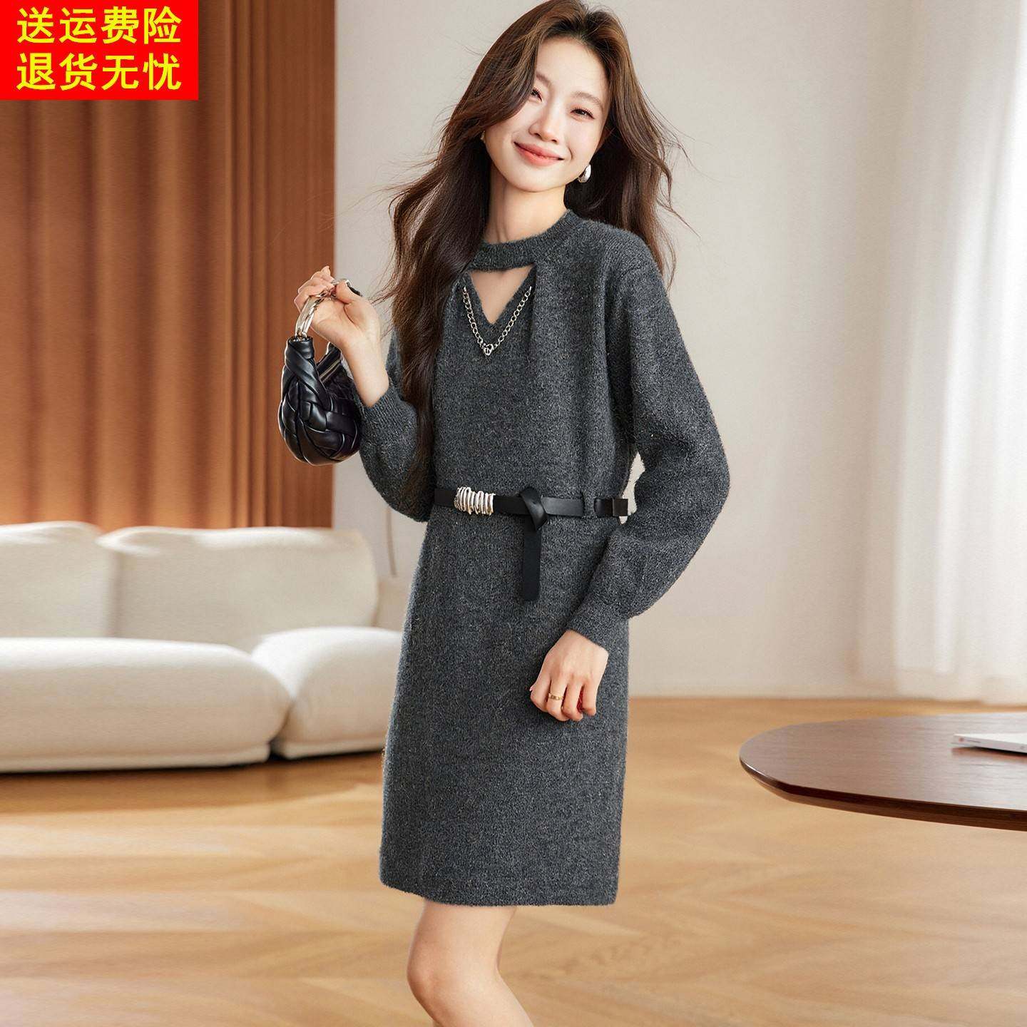 圣诞红色针织连衣裙女2025秋冬新款收腰显瘦中长款气质高级感裙子