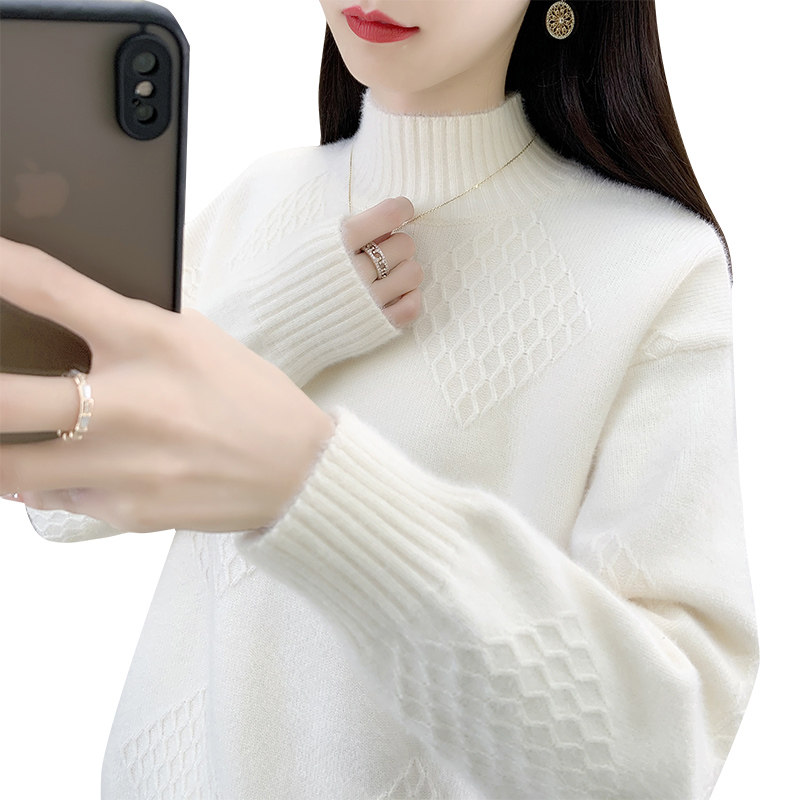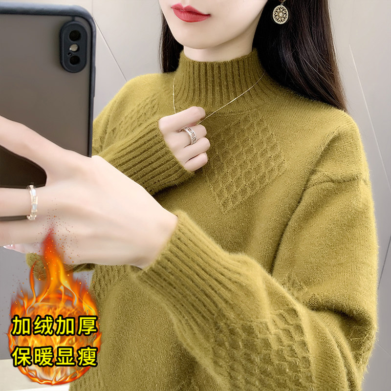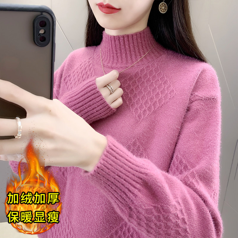 毛衣女款2025新款冬季半高领加绒加厚水貂绒上衣内搭打底衫女秋冬