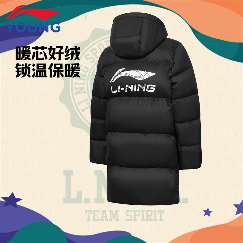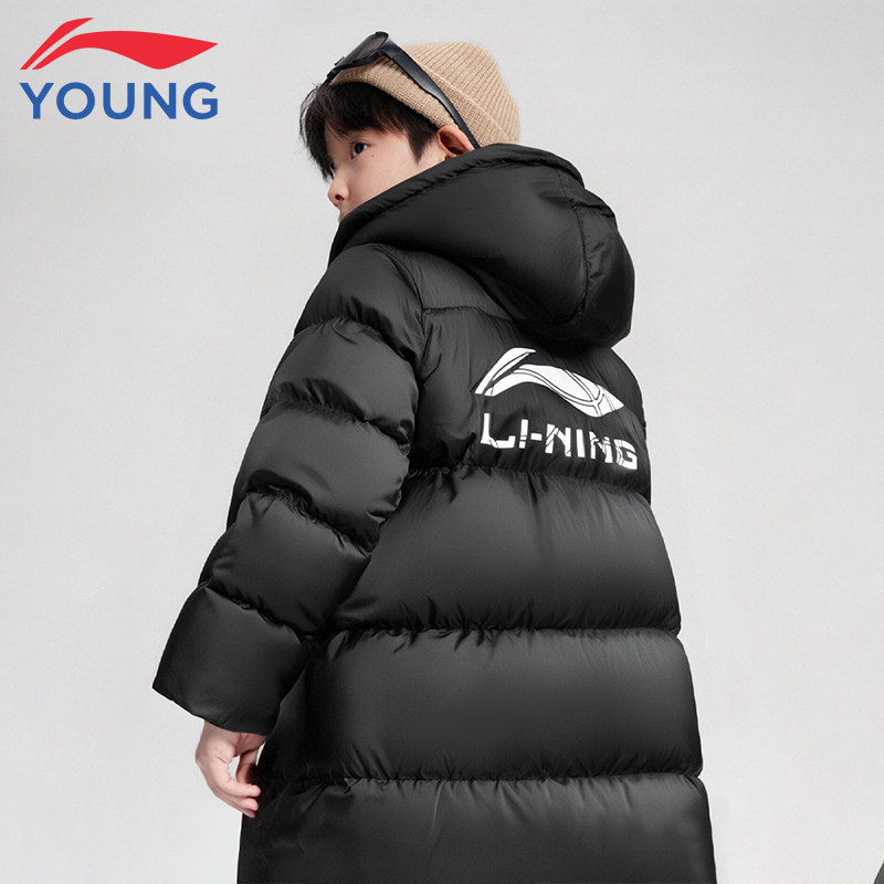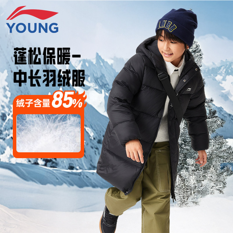 李宁童装儿童中长款羽绒服男大童青少年2025新款连帽保暖上衣冬季