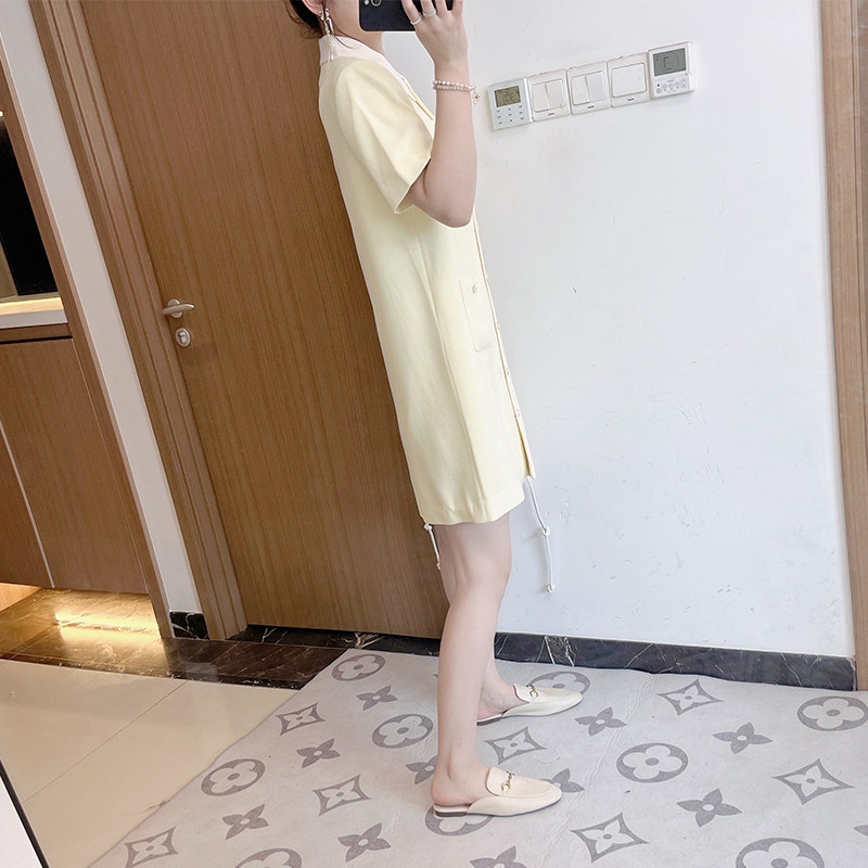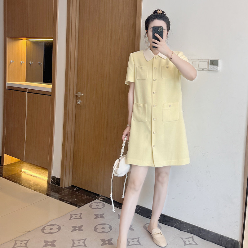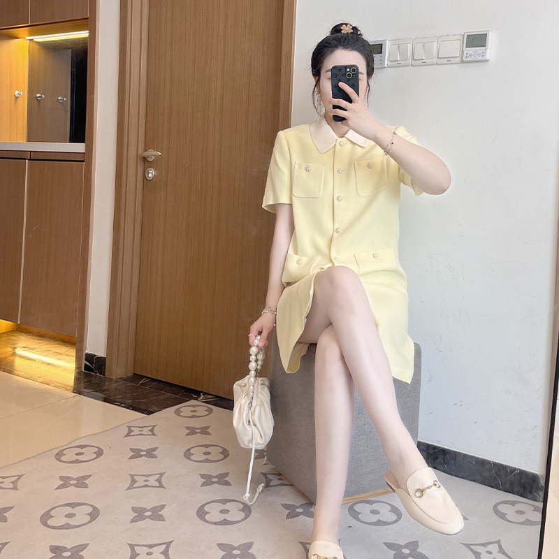 2025春夏新款设计感小香风裙子柠檬黄直筒连衣裙女小个子大码胖mm