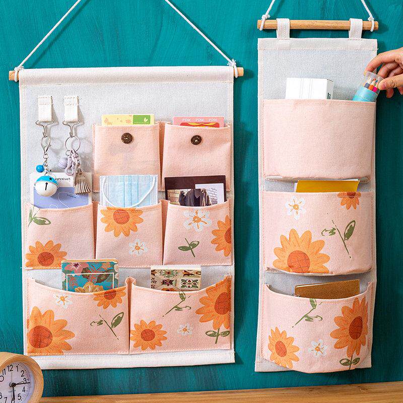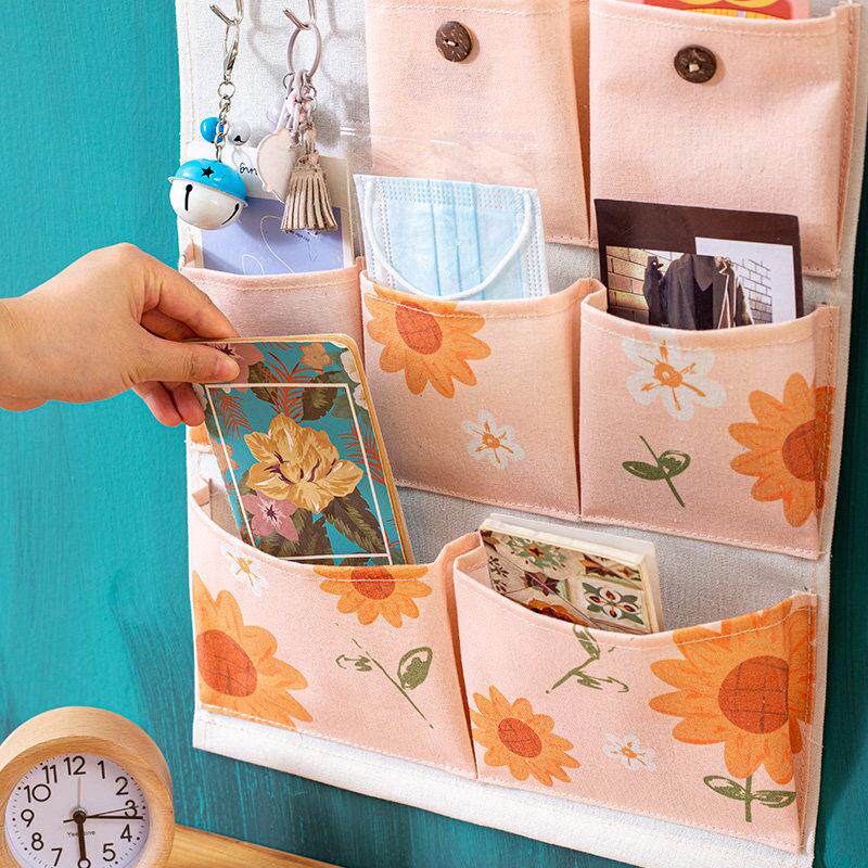 宿舍墙面布艺收纳挂袋艺术花卉墙挂式衣柜门后置物架卫生间床挂篮