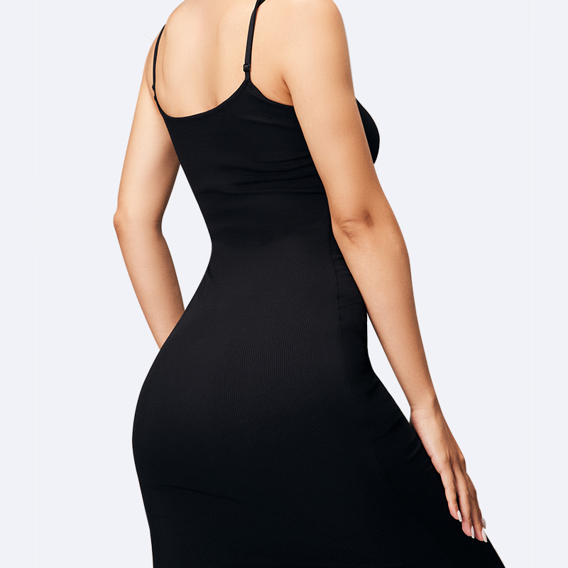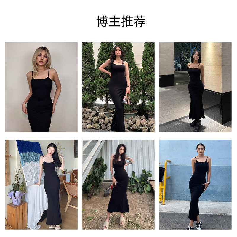 WMU卡戴珊同款鱼尾裙螺纹针织包臀吊带连衣裙女长款修身黑色夏季