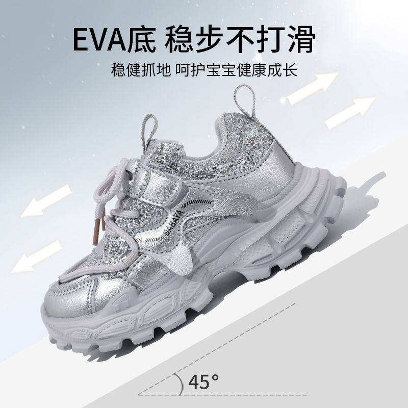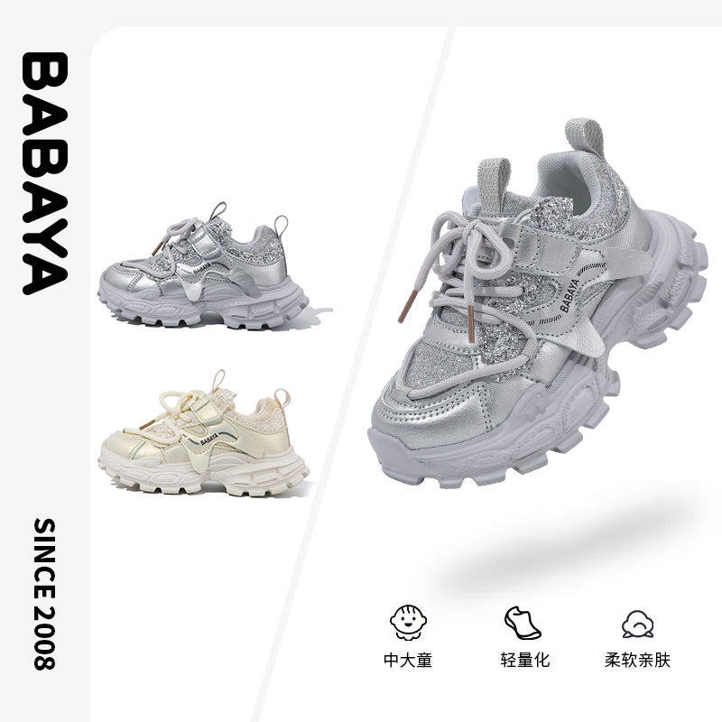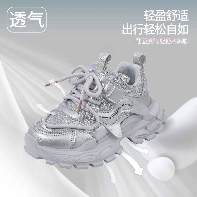 芭芭鸭儿童运动鞋2026春季新款老爹鞋女童鞋子百搭软底透气跑步鞋