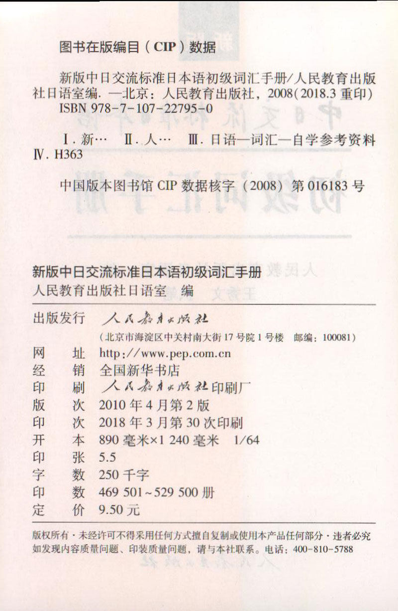 新版中日交流标准日本语初级词汇手册 标准日语自学入门基础教程日文新标日中级教材自学参考资料 人民教育出版社