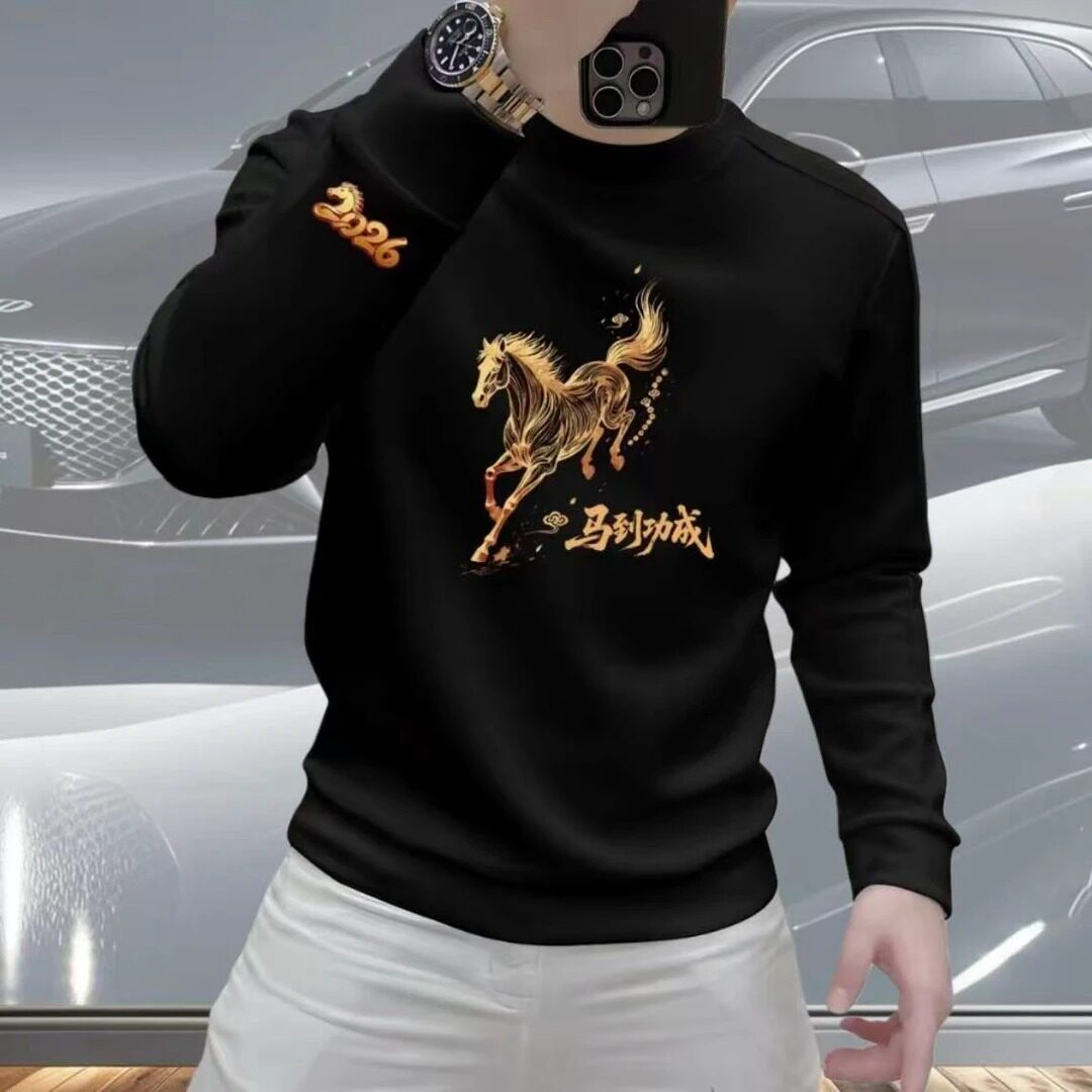 立减60元!马年红色圆领加绒刺绣卫衣男女款新年本命年时尚百搭lw