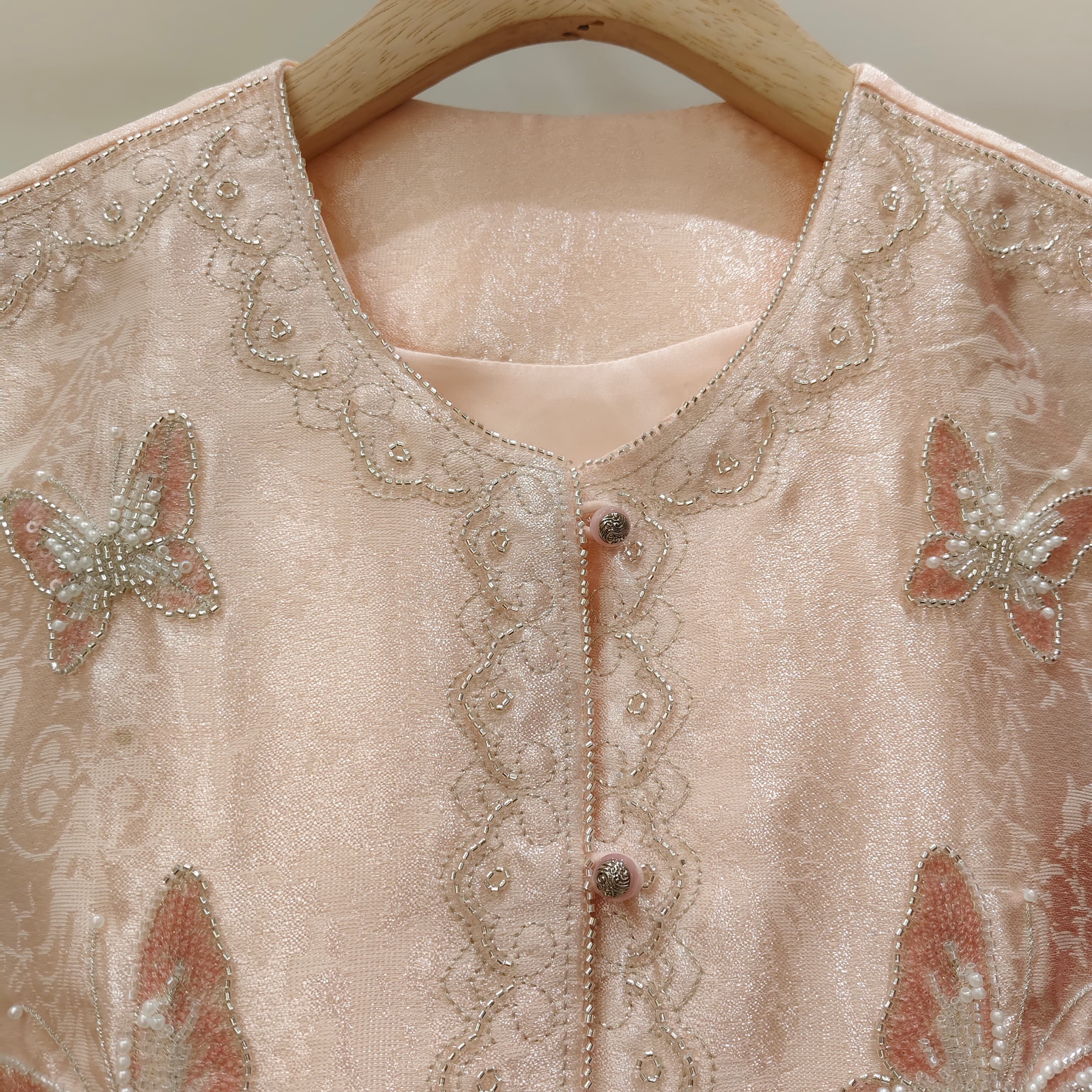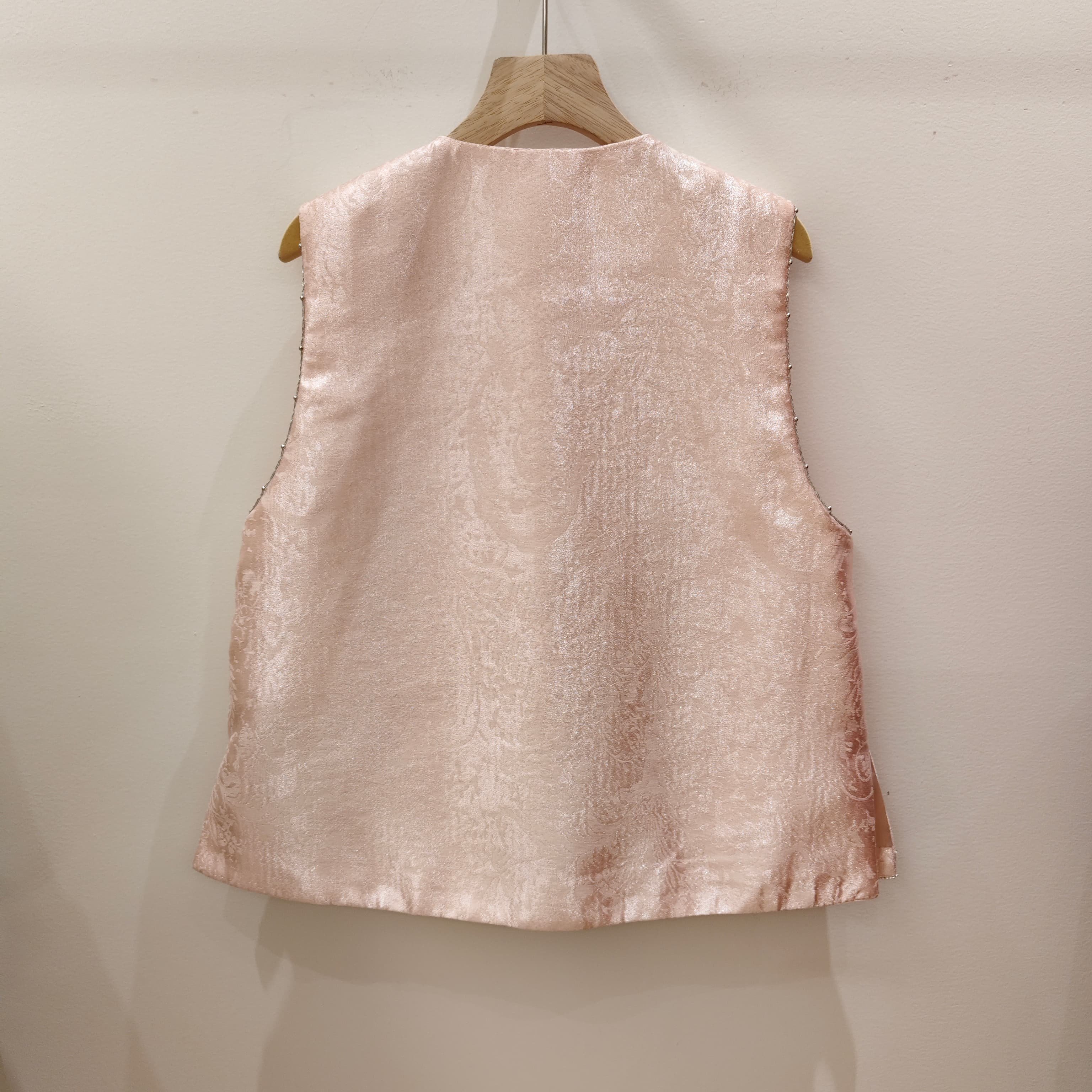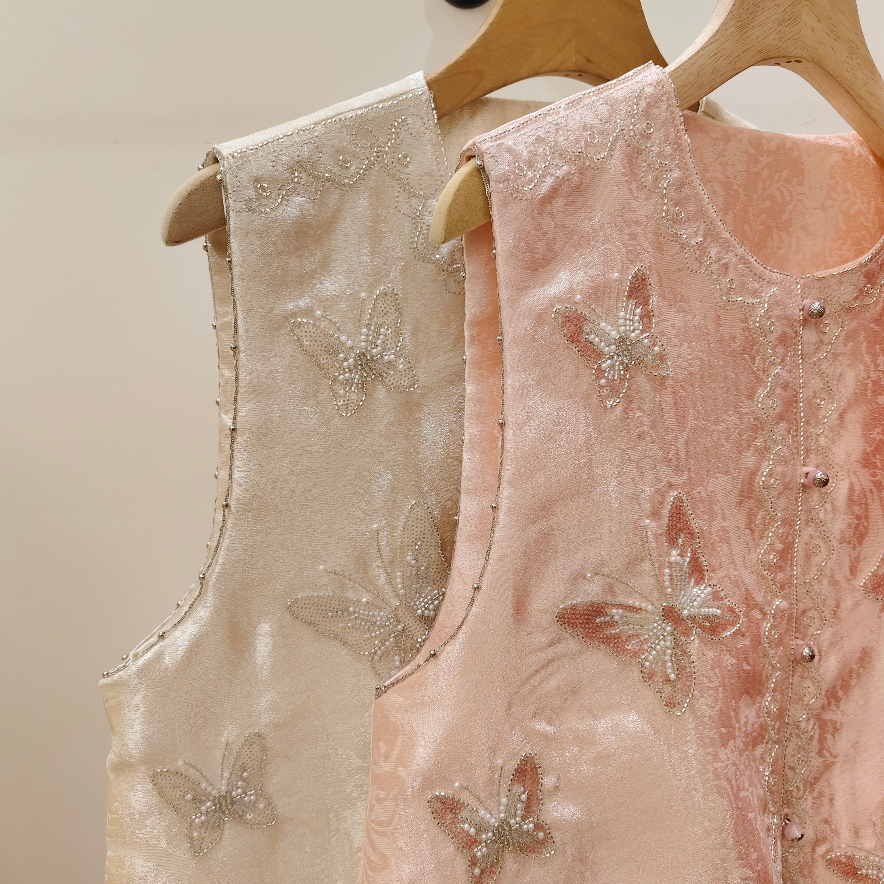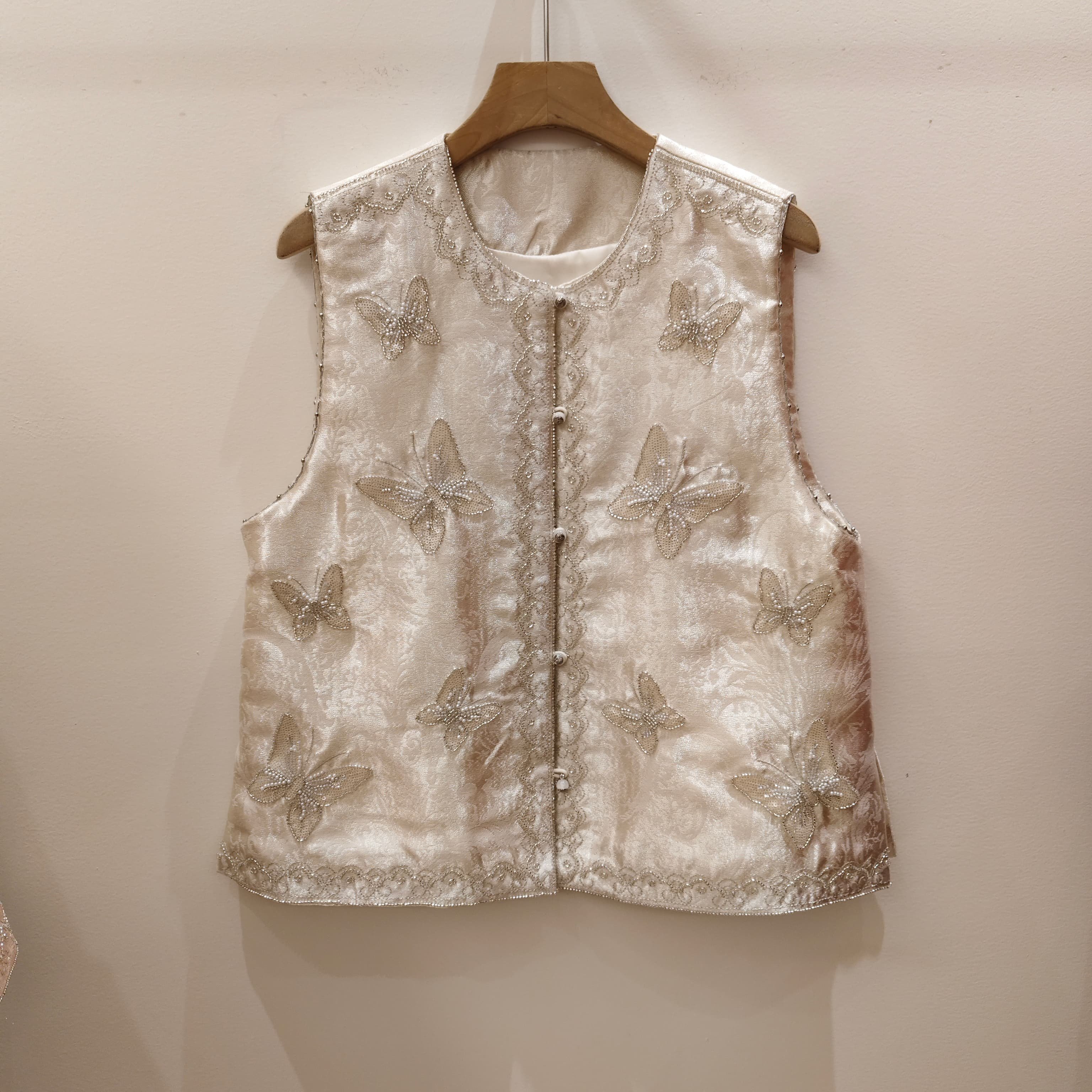 早春重工钉珠蝴蝶新中式圆领马甲女2026新款时尚气质人丝国风上衣