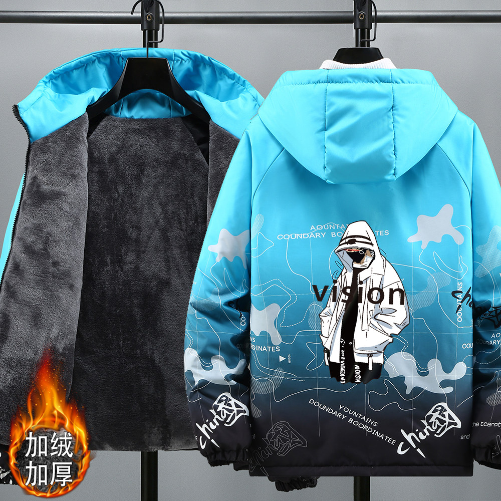 青少年加绒加厚外套13岁男孩初中学生冬装棉服15大童冲锋衣夹克14