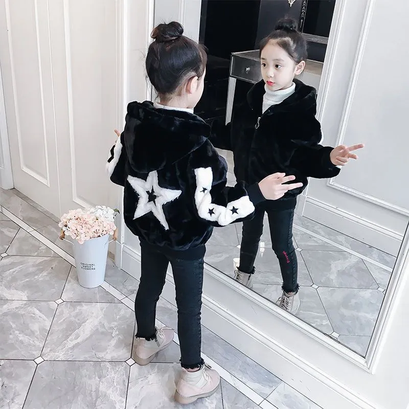 女童夹棉外套冬装2026新款洋气加厚儿童冬季仿皮草上衣宝宝毛毛衣