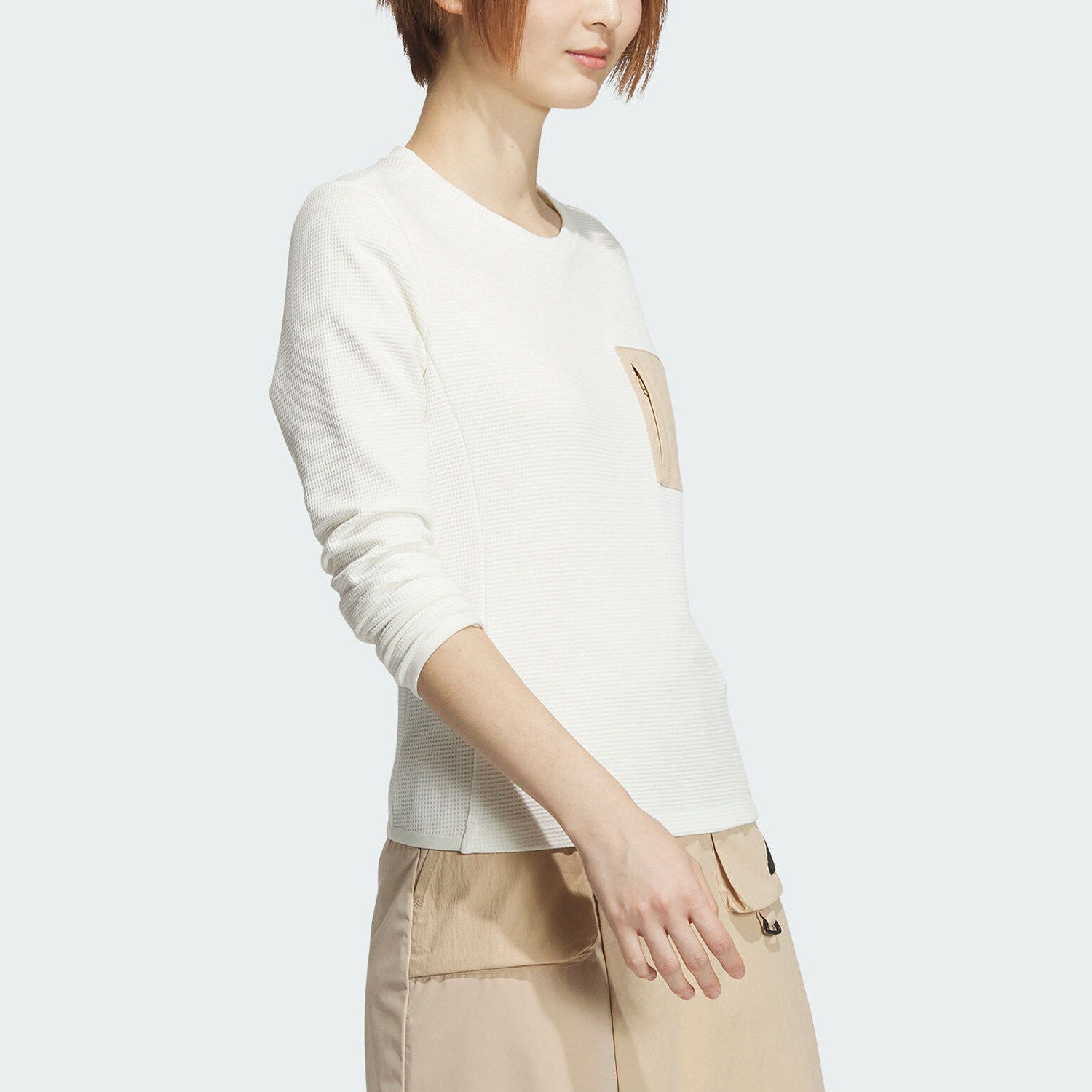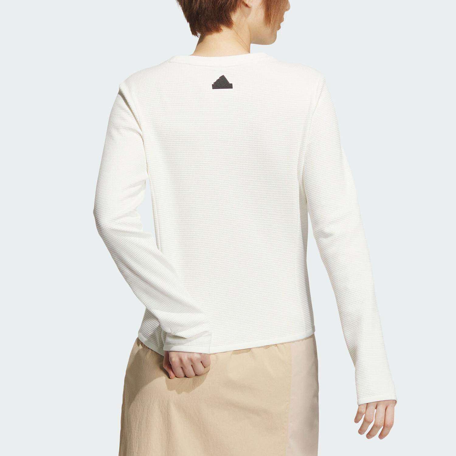 阿迪达斯卫衣外套女装秋款运动服华夫格圆领套头衫休闲上衣JE8580