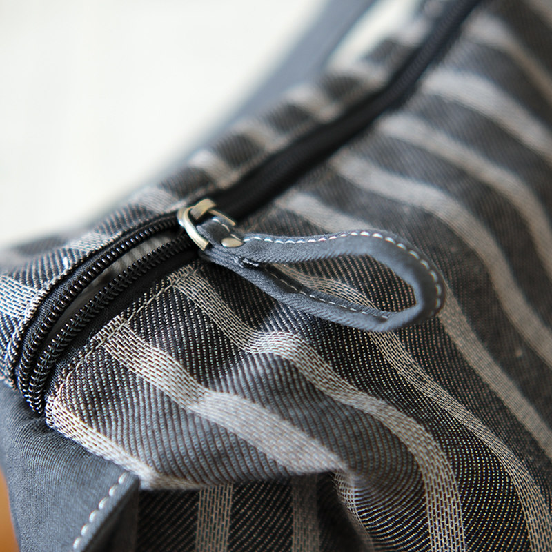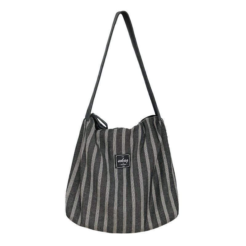 sobag日系条纹秋冬慵懒单肩棉麻帆布包包女通勤拉链大容量托特包