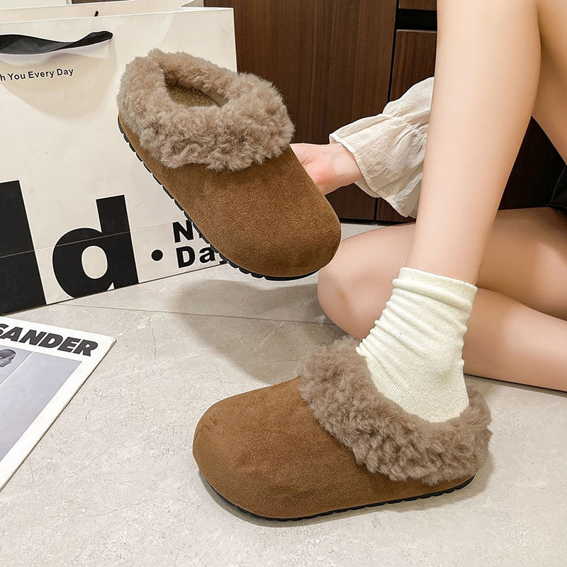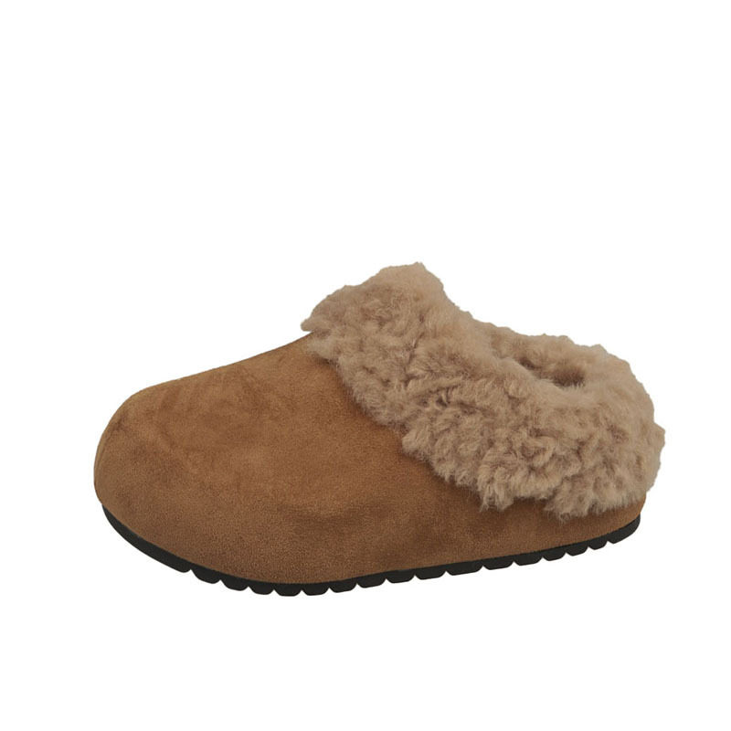 加绒棉鞋磨砂勃肯2025秋冬新款懒人一脚蹬复古厚底增高两穿毛毛拖
