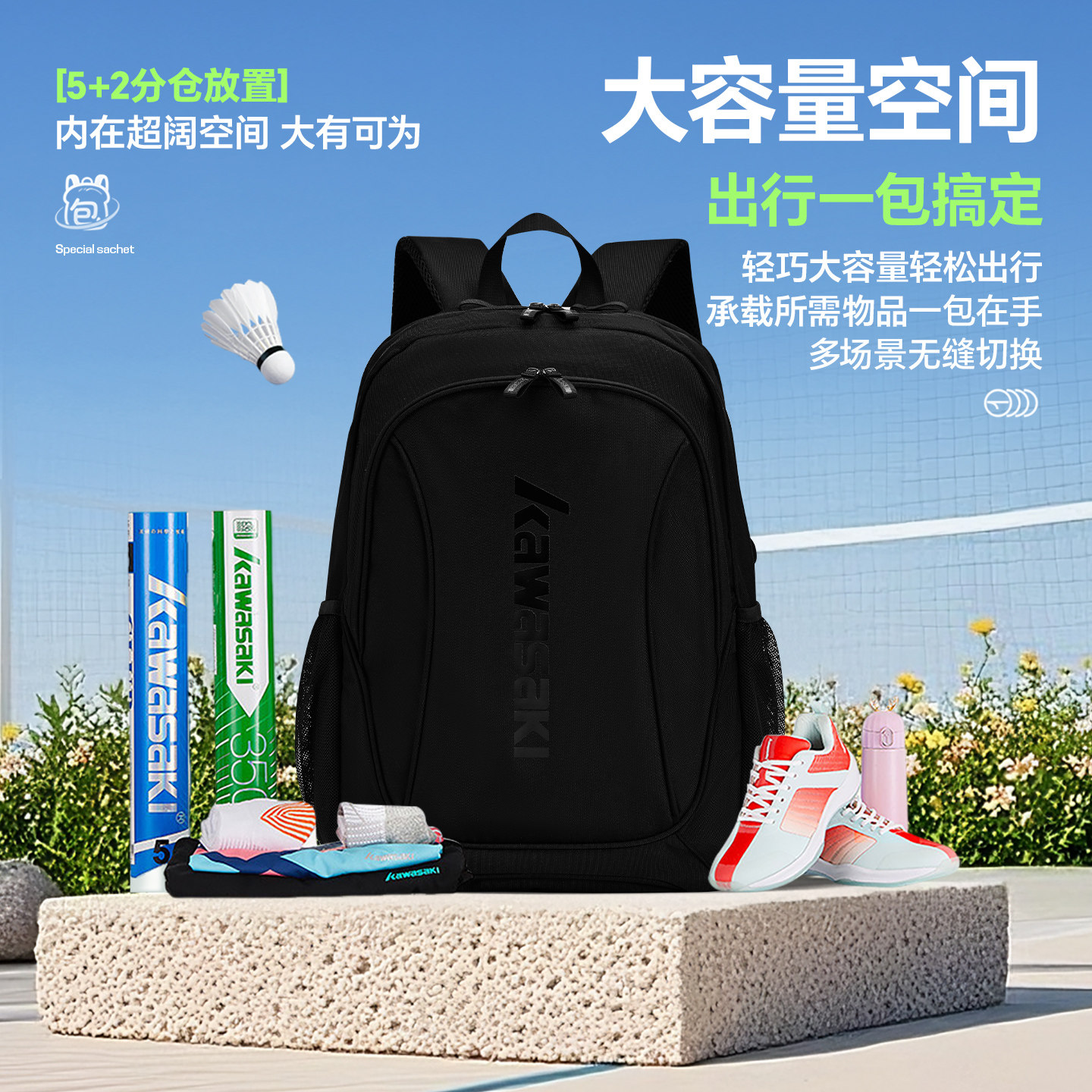 311线报网描述:川崎KAWASAKI羽毛球包双肩包