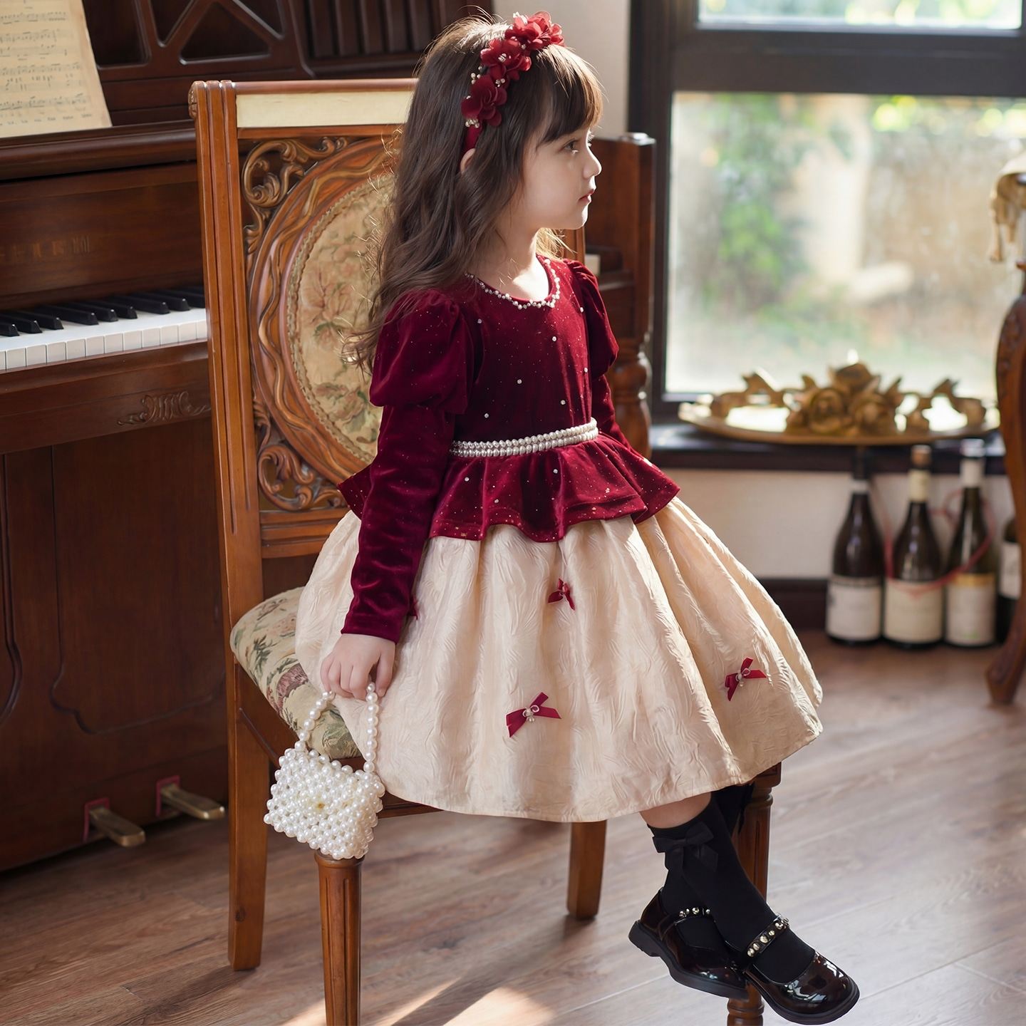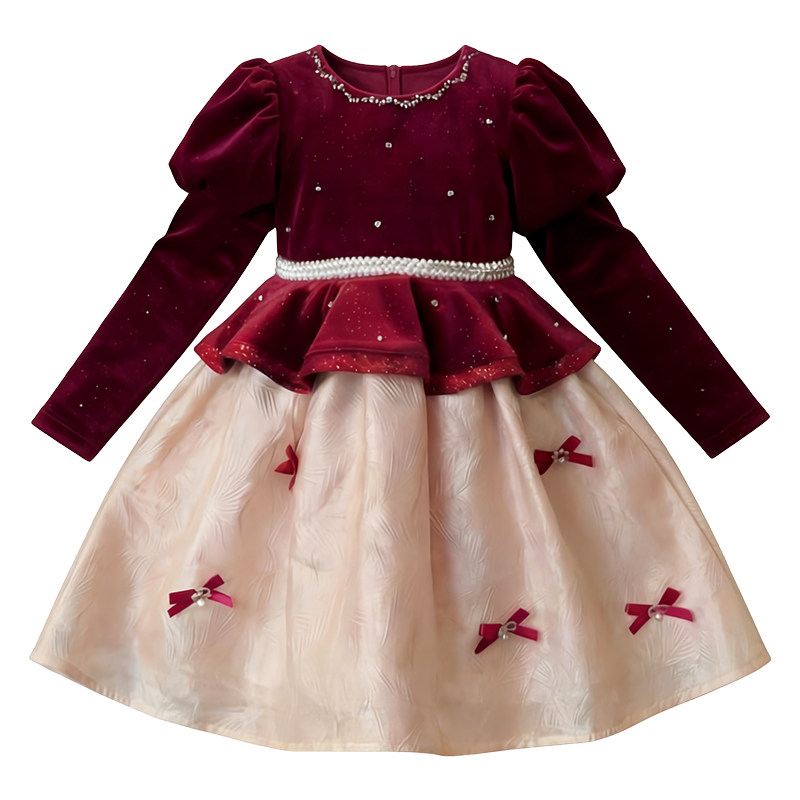 女童公主裙冬装2026新款儿童法式丝绒裙小女孩新年红色加绒连衣裙