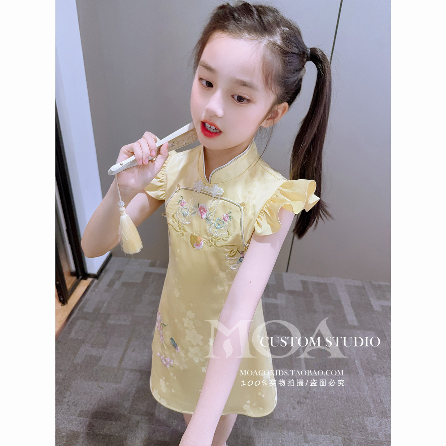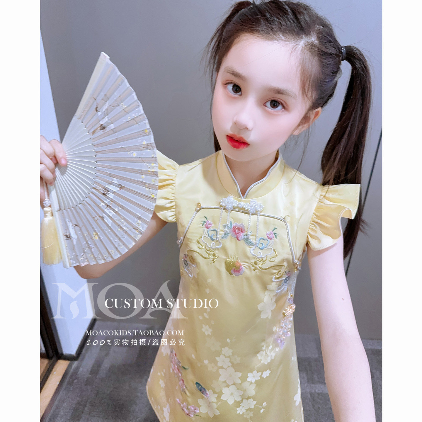 轻奢小众高端女童连衣裙夏季薄款洋气儿童新中式国风改良旗袍礼服