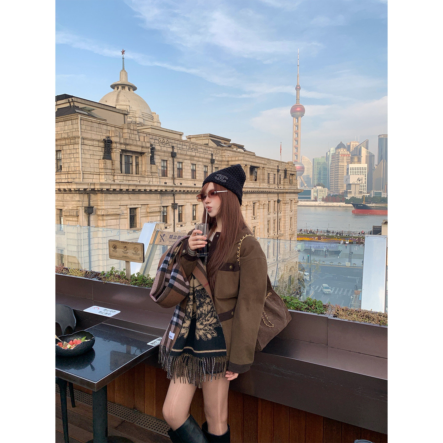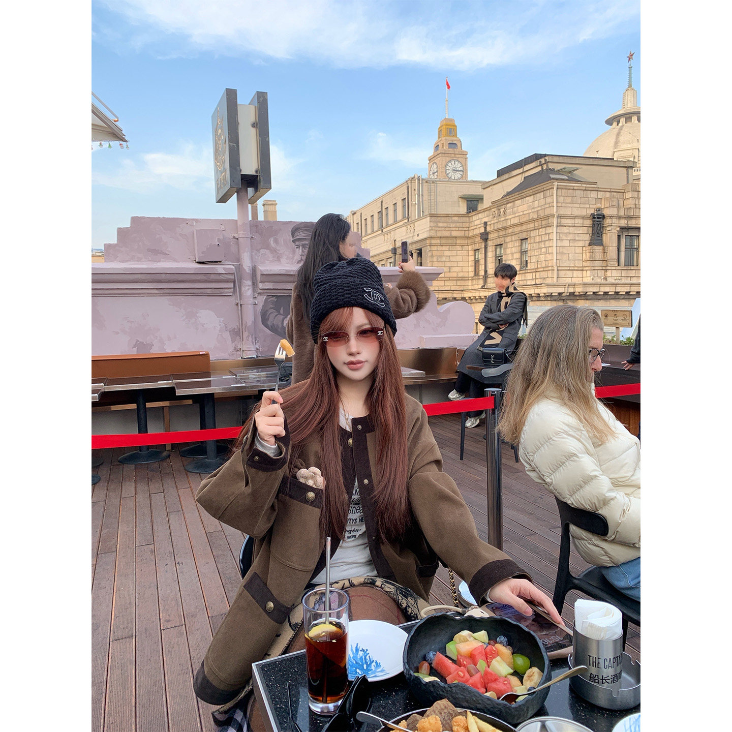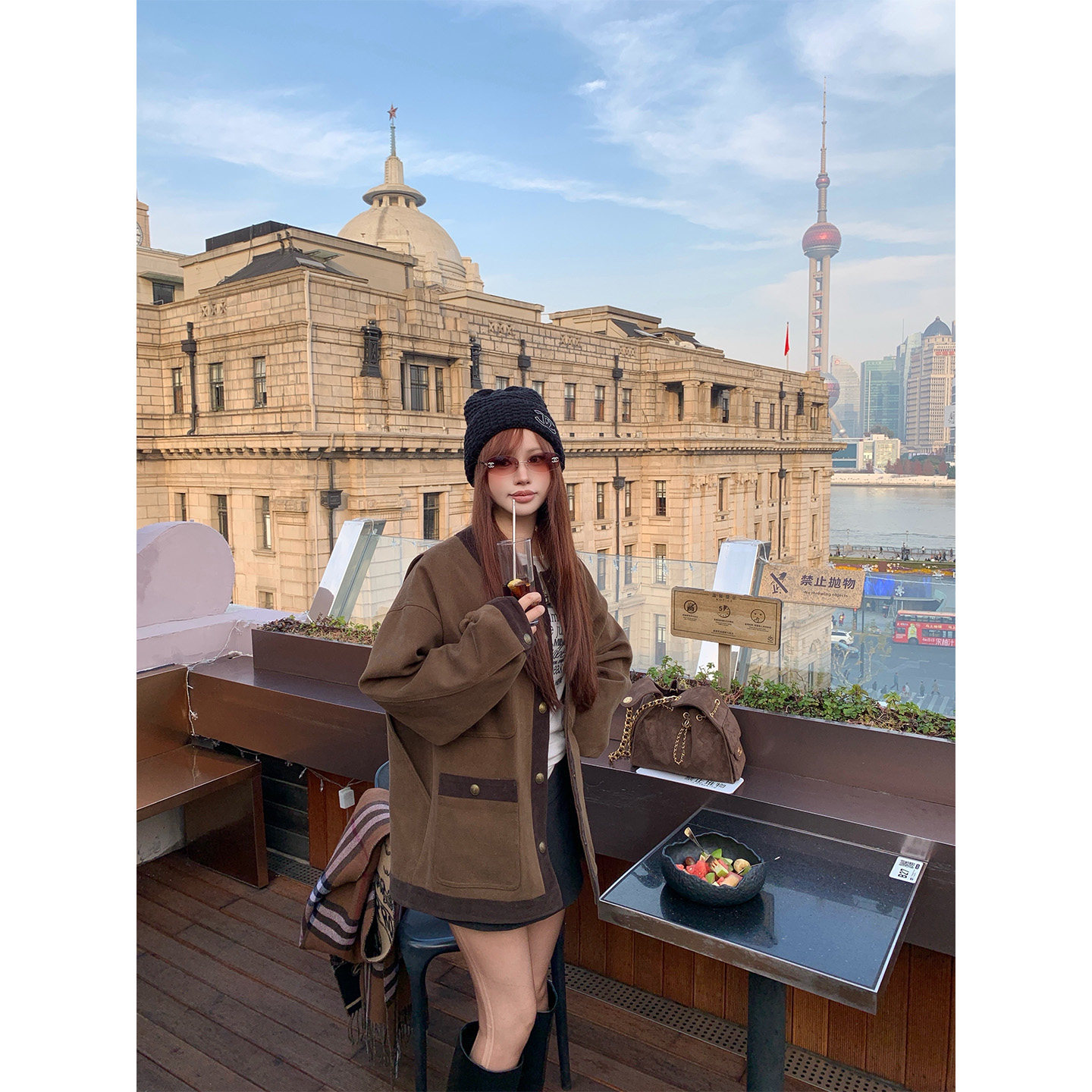 圆领羽绒外套2026年新款春季女士中长款拼色小香风外套轻奢风外套