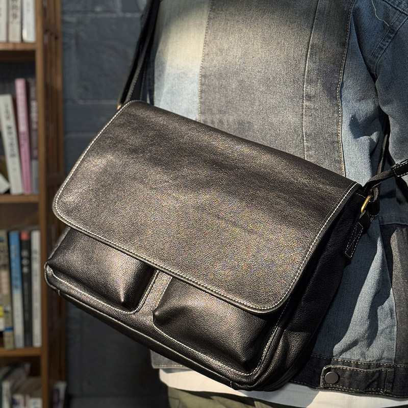手工擦色真皮男款背包休闲单肩包头层牛皮斜挎包欧美通勤风邮差包