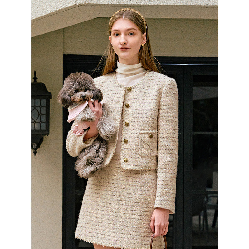 PIT长袖小香风外套女2026春季新款短裙元旦过年战袍一套装