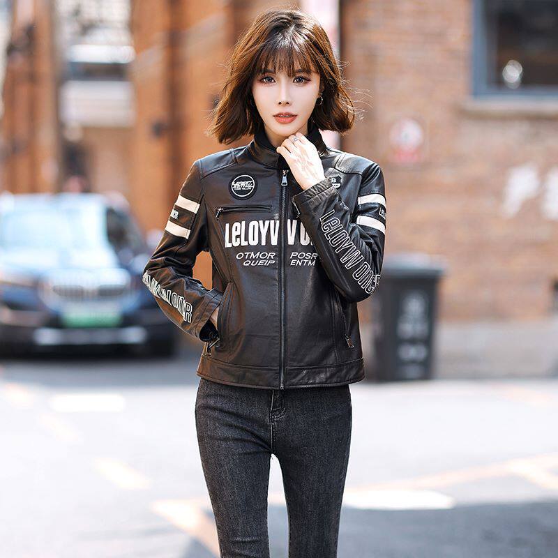 海宁真皮机车骑行绵羊皮外套女2026春秋新款短款时尚个性立领皮衣