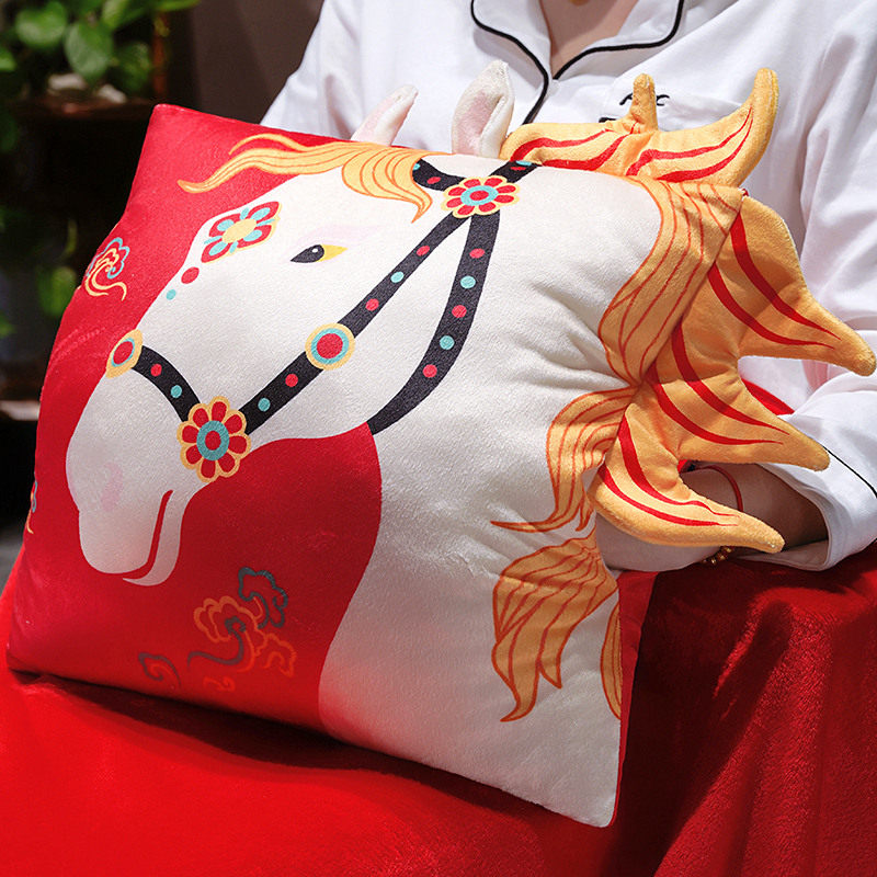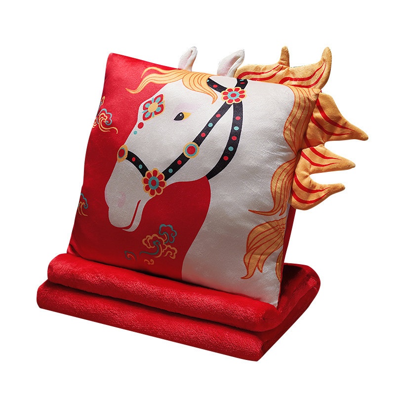 马年吉祥物抱枕2026新年暖手抱枕毯子三合一公司年会活动定制礼品