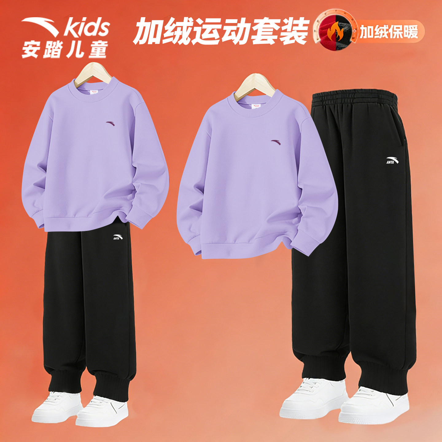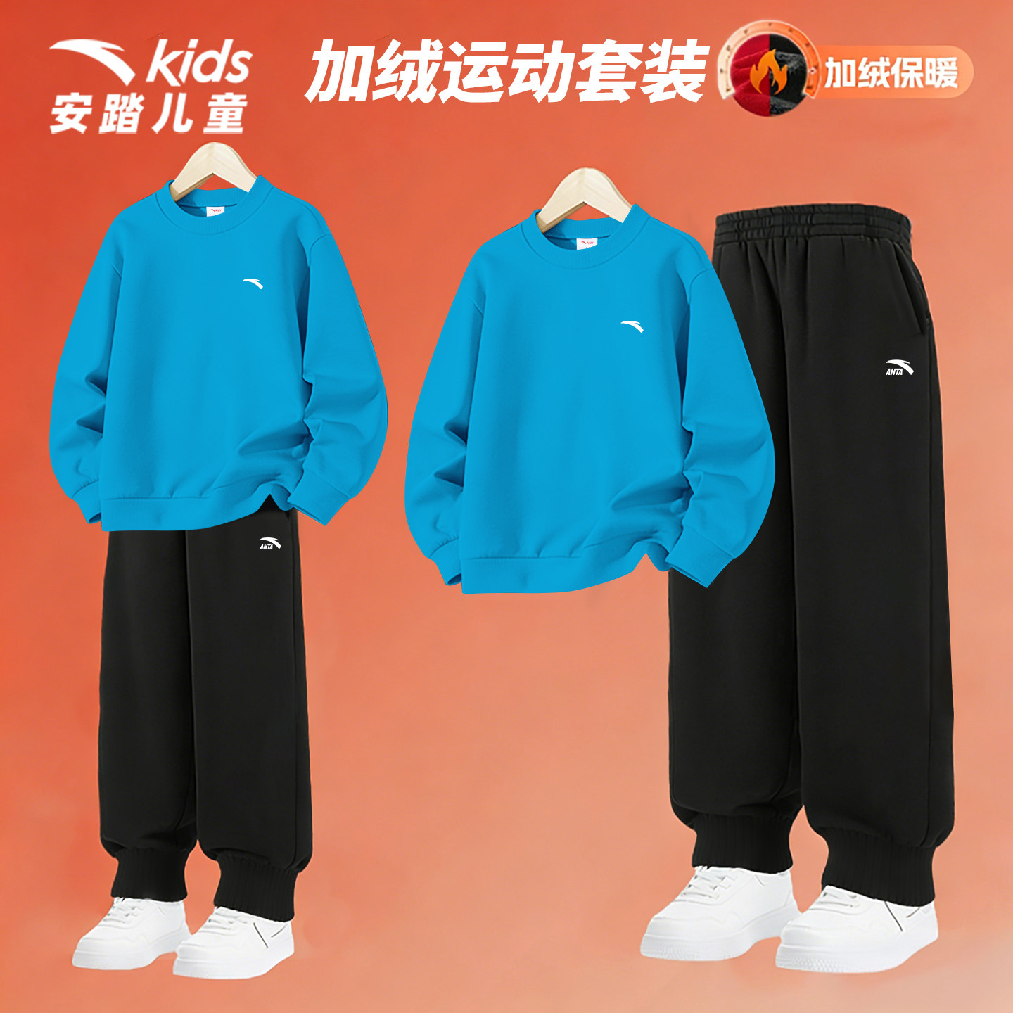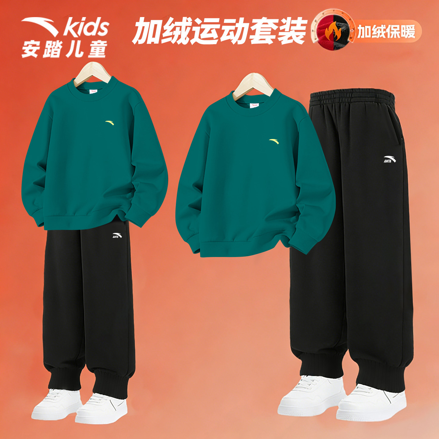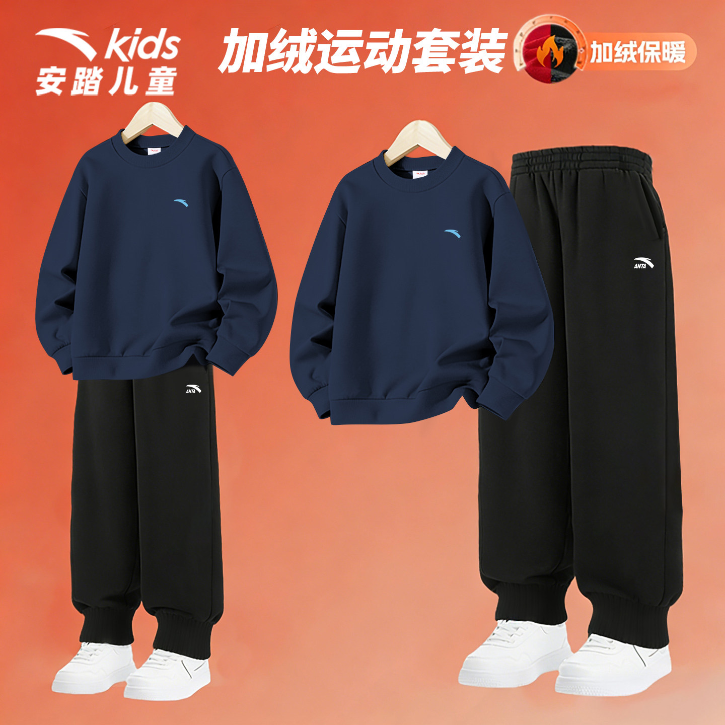 安踏童装男童跑步运动套装秋冬加绒两件套卫衣卫裤本命年红色衣服