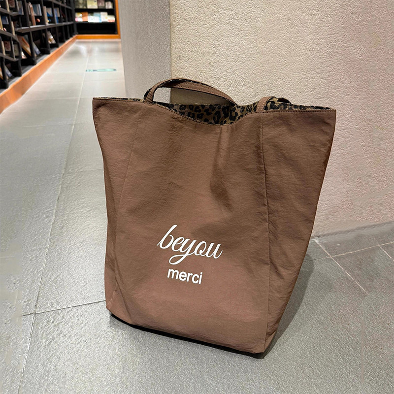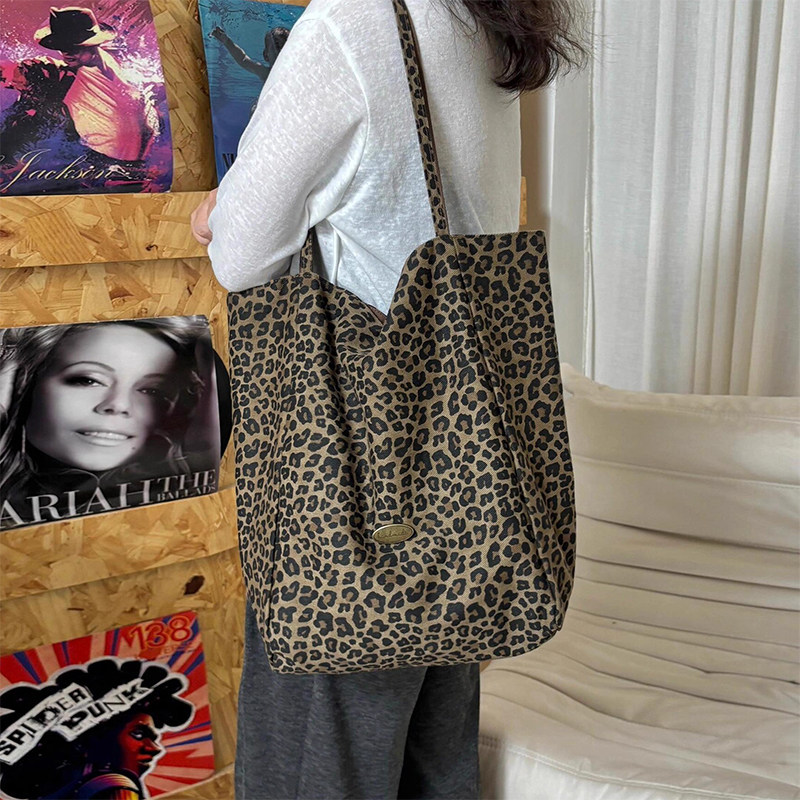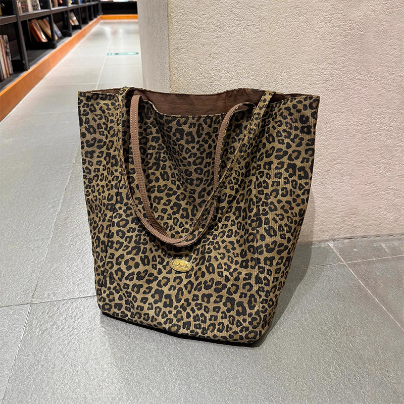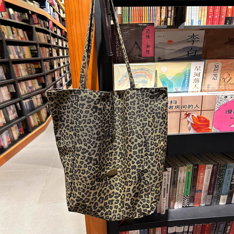 豹纹包包女款2025新款大容量帆布包双面轻便单肩包通勤百搭手提包