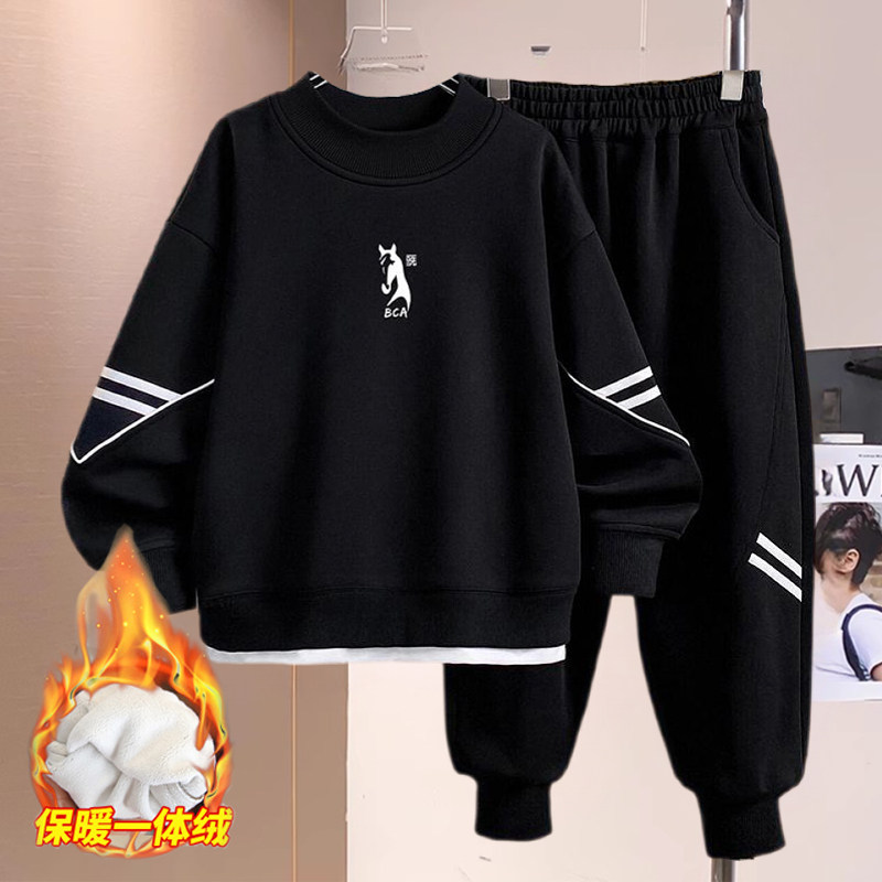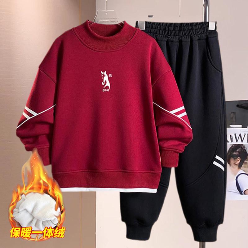 童装男童冬装套装2025新款红色加绒新年衣服中大童冬季帅气两件套