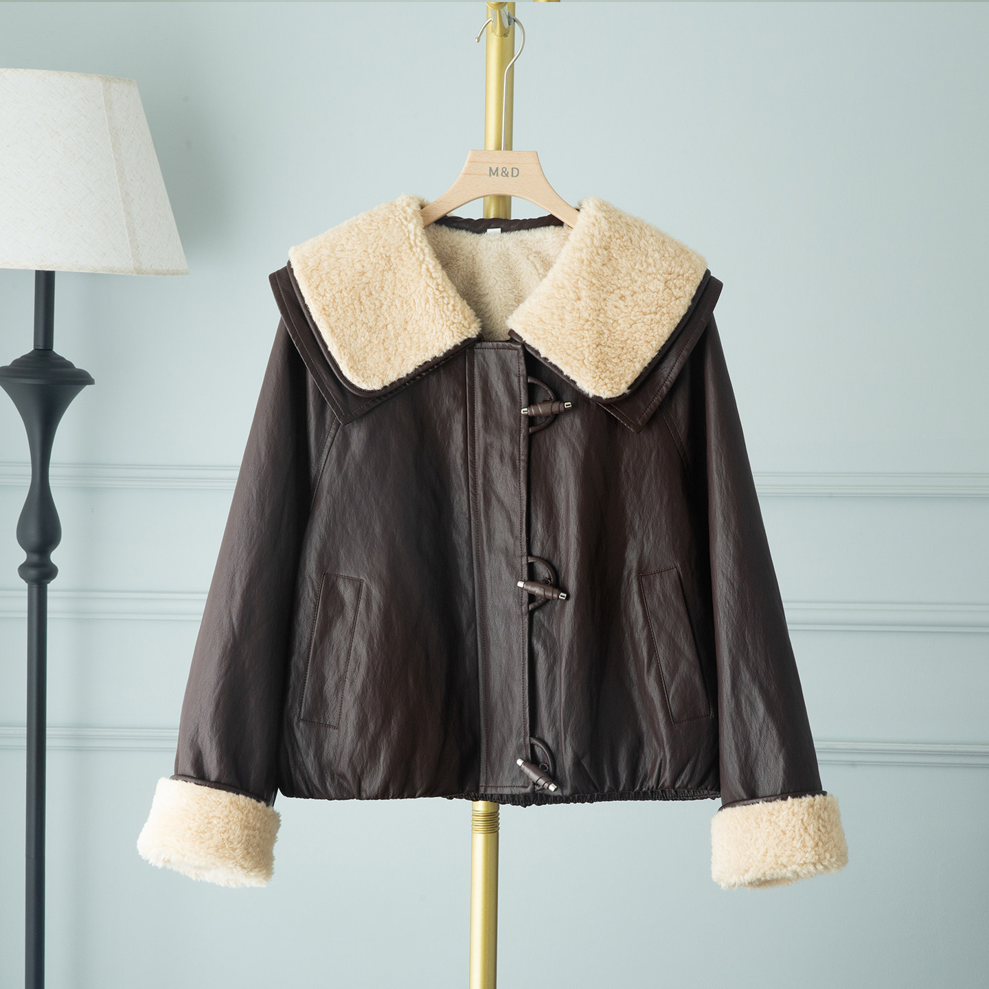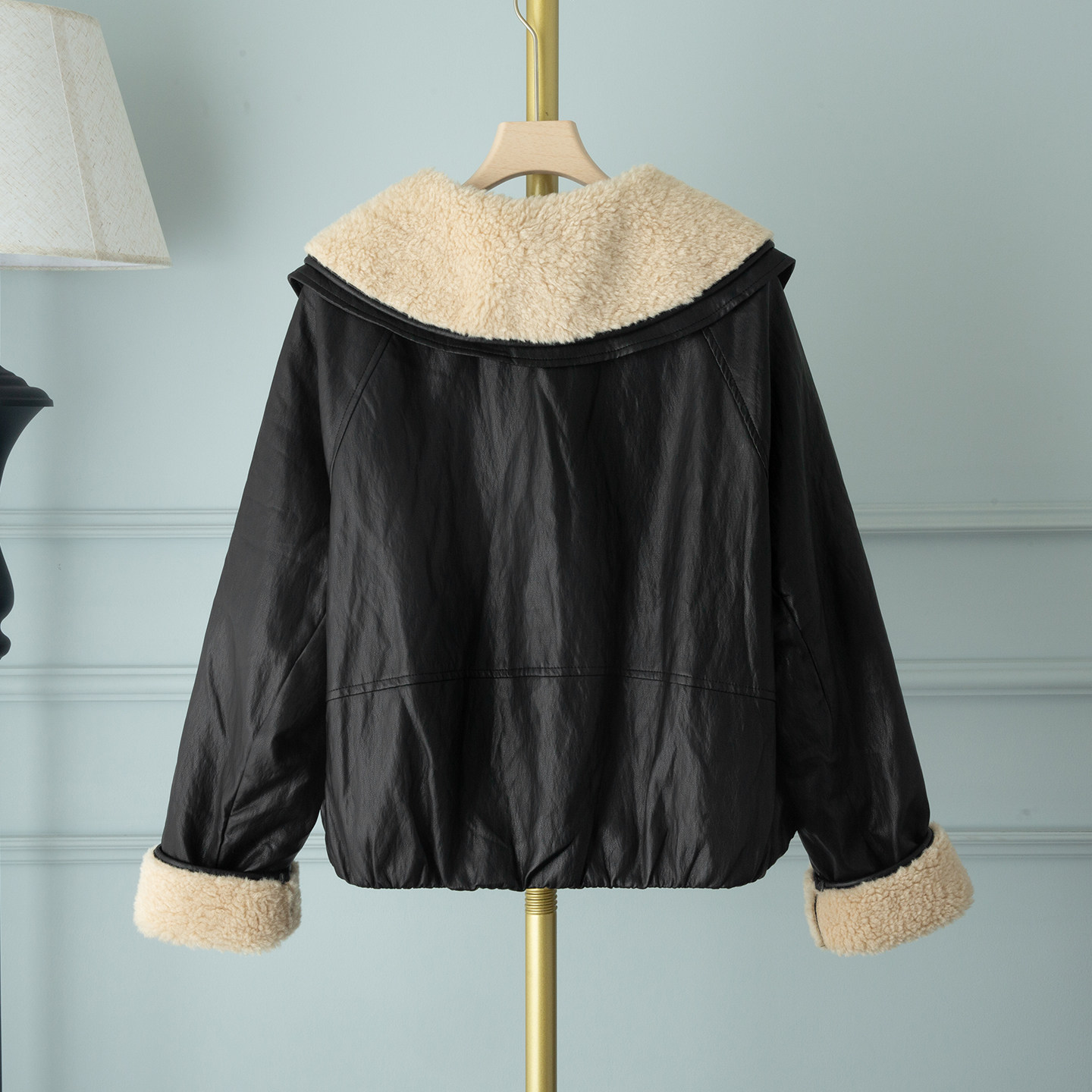 小香风羊羔毛茸茸娃娃翻领pu皮衣外套女2025冬季新款加绒加厚夹克