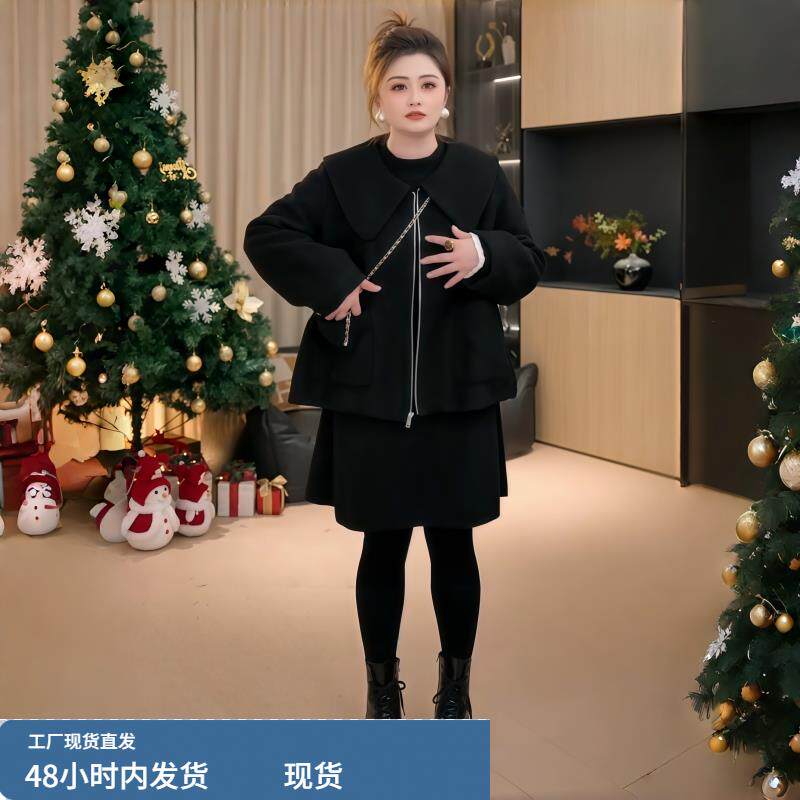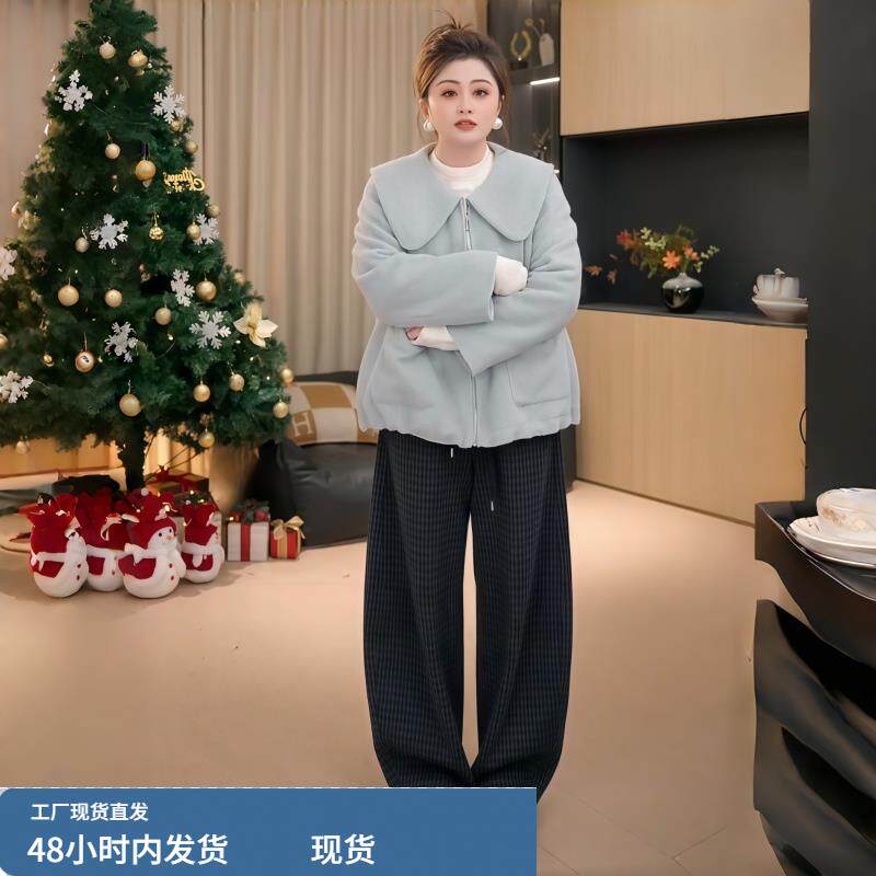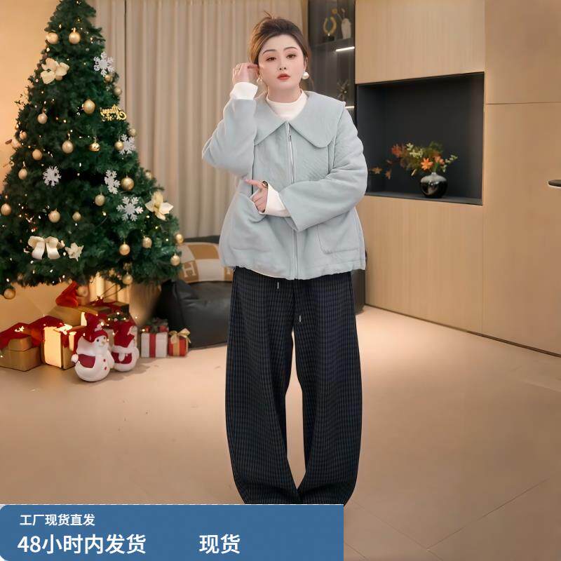 大码女装韩版娃娃领短外套女冬季新款胖mm减龄加厚夹棉小香风上衣