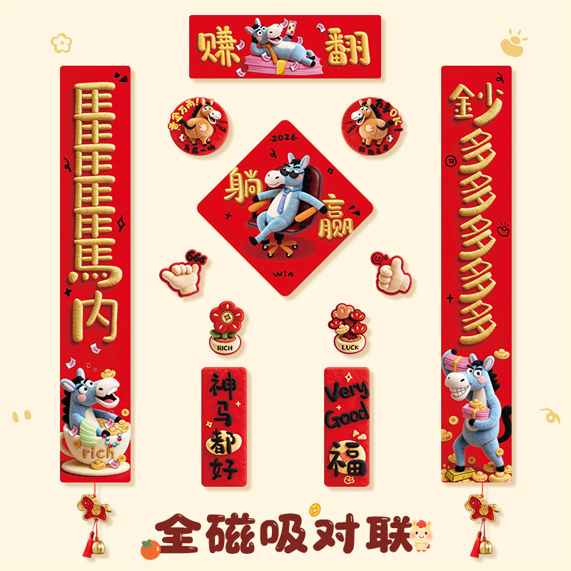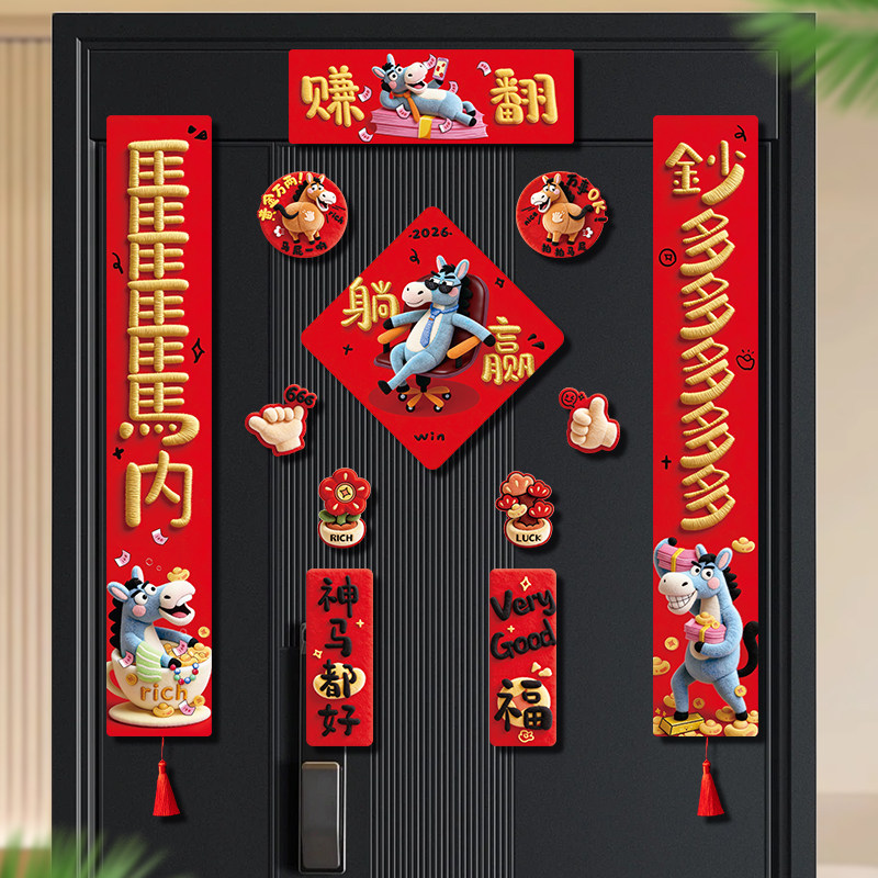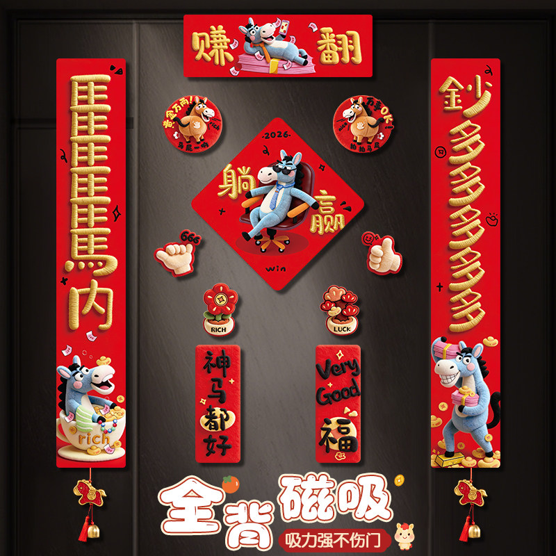 对联春联2026年新款全磁吸马年高档大气福字门贴创意高端过年装饰