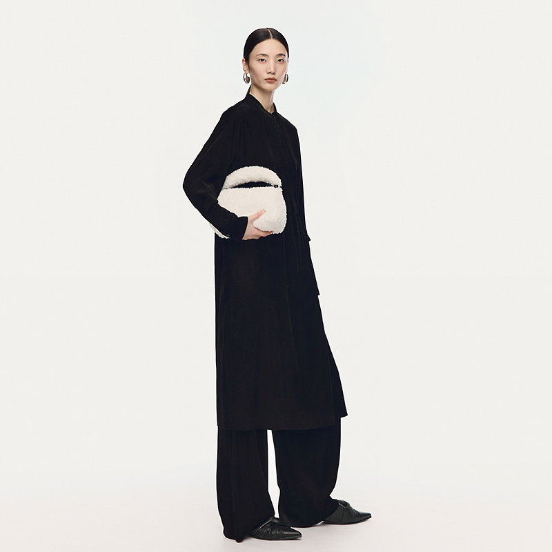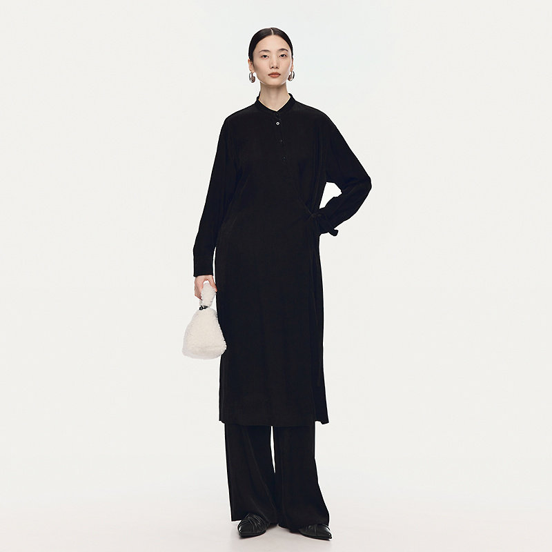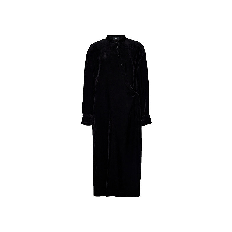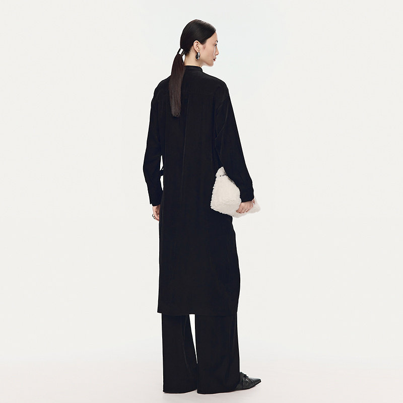 【光影树纹】AUM噢姆2025年冬季新款灯芯绒新中式黑色连衣裙长裙
