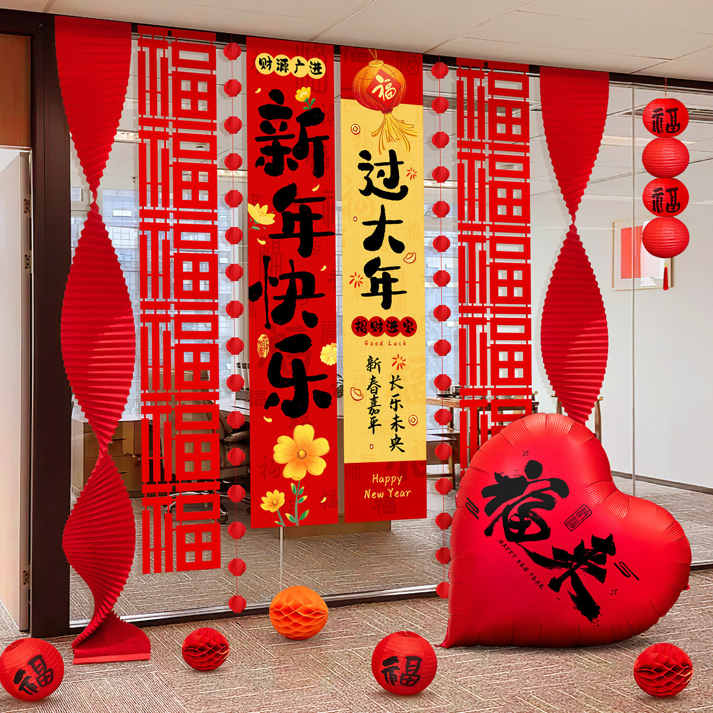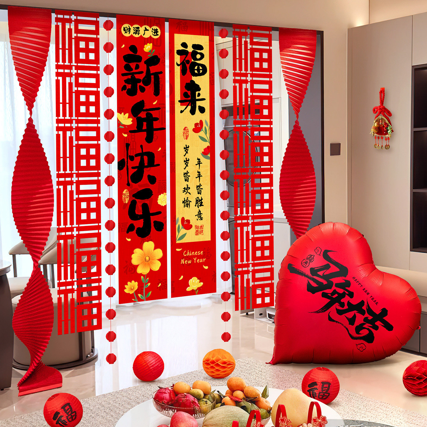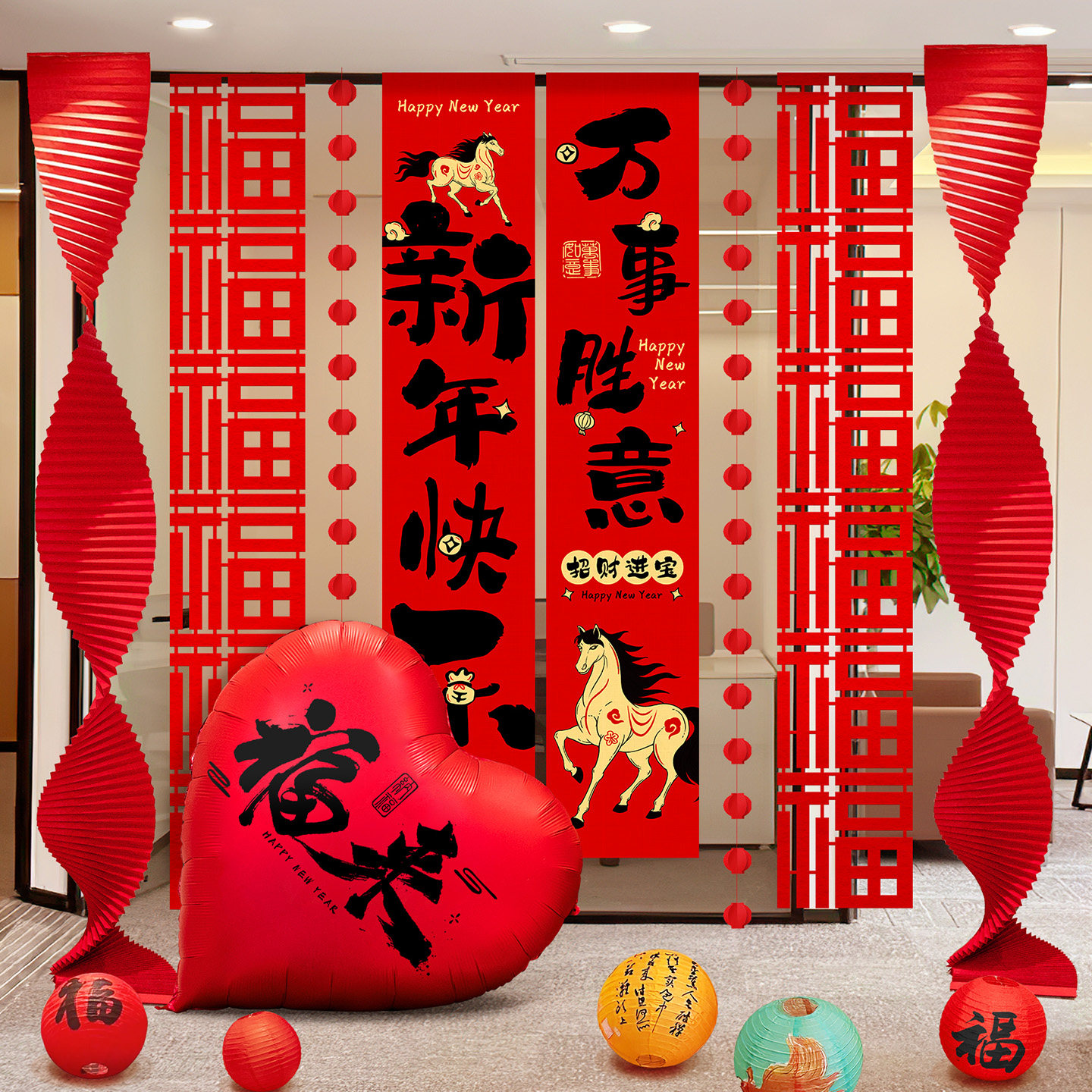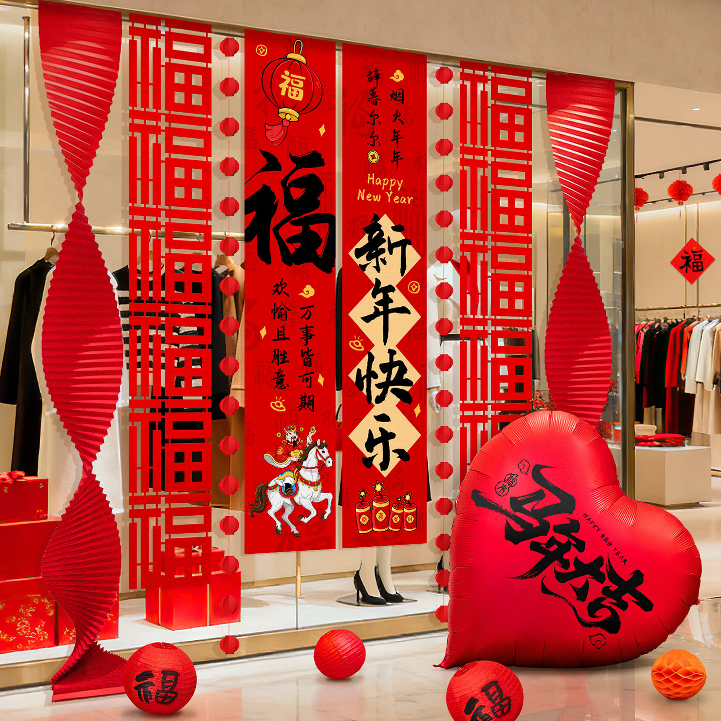 2026新年春节马年条幅家用墙面挂饰商场店铺橱窗拉花挂布气球装饰