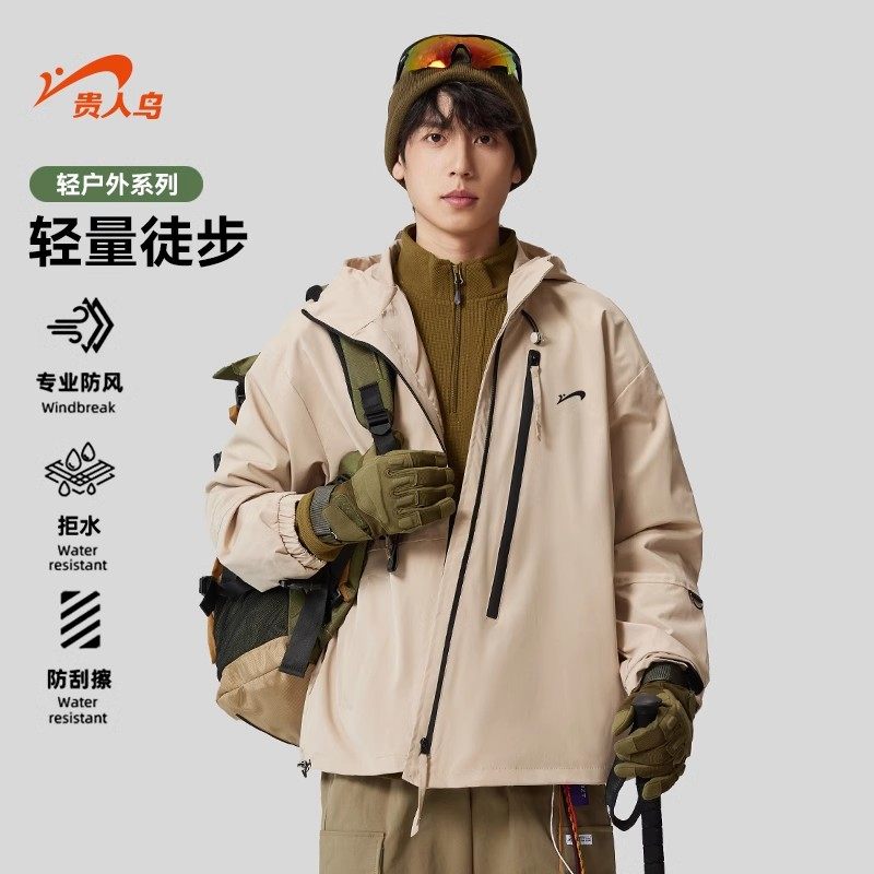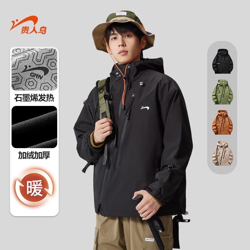 贵人鸟男士外套男秋冬款斜拉链冲锋棉服外套男生连帽棉衣冬装男款
