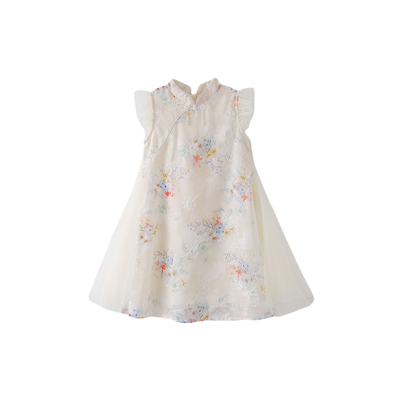 拉夏贝尔童装女童富家千金感裙子夏季新中式汉服旗袍裙儿童连衣裙