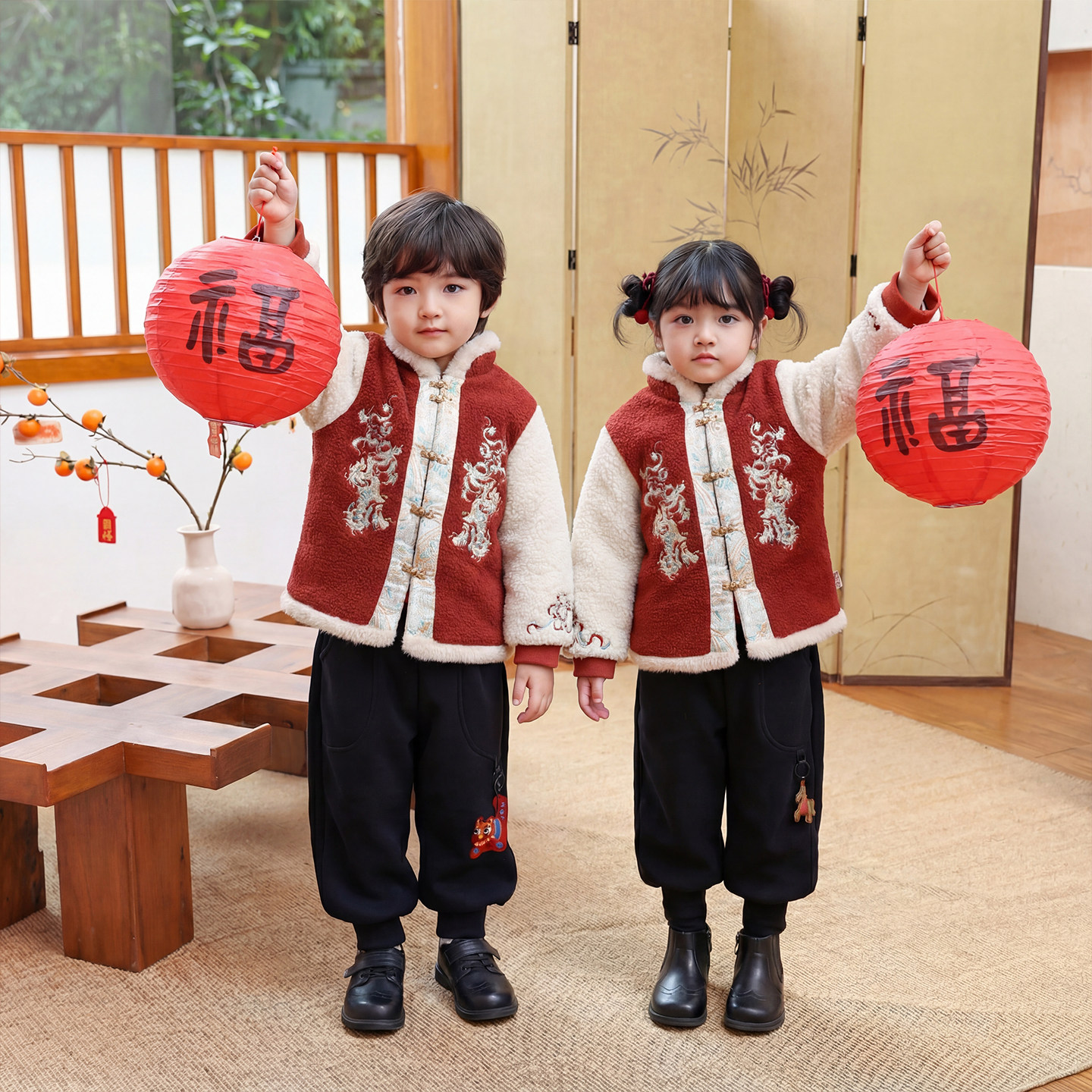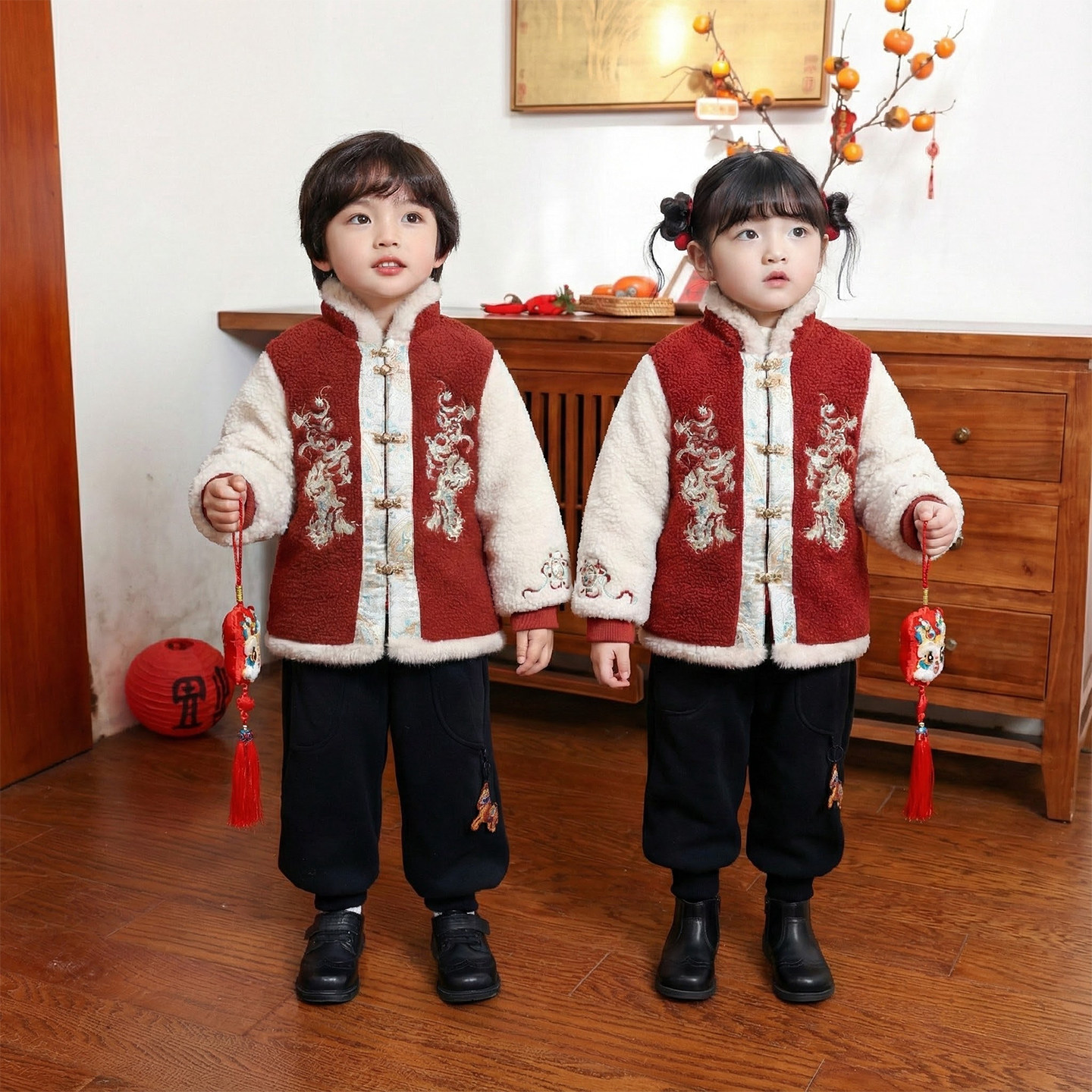 拜冬年服喜庆风儿童冬装新中式国风唐装男童过年衣服女童新年外套