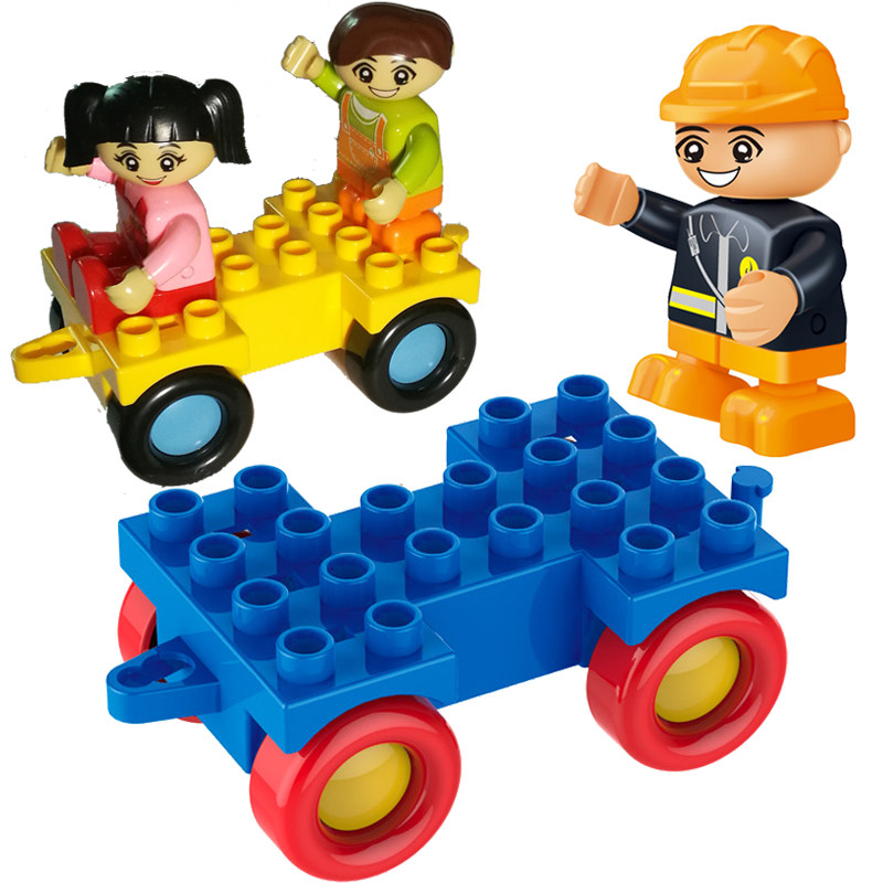 邦宝大颗粒汽车车轮底盘公仔小人仔散件零件拼装拼插积木儿童玩具