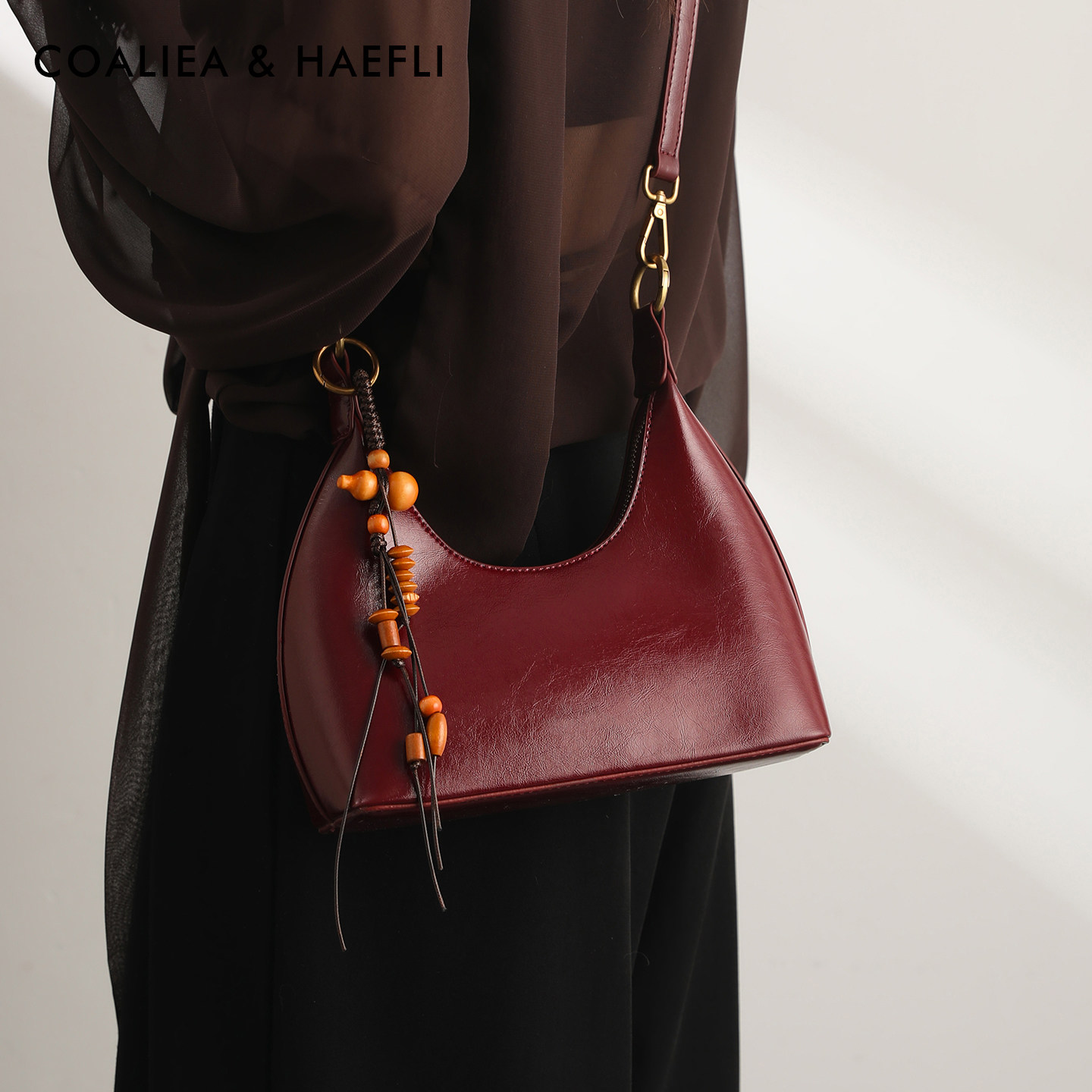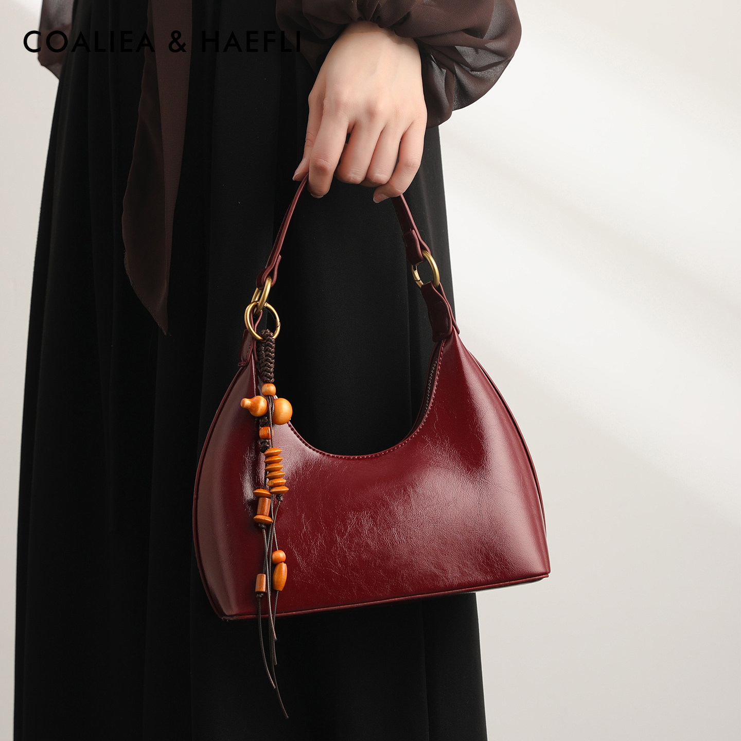 香港品牌油蜡皮晚宴腋下包质感红色手提包包女款通勤单肩斜挎包潮