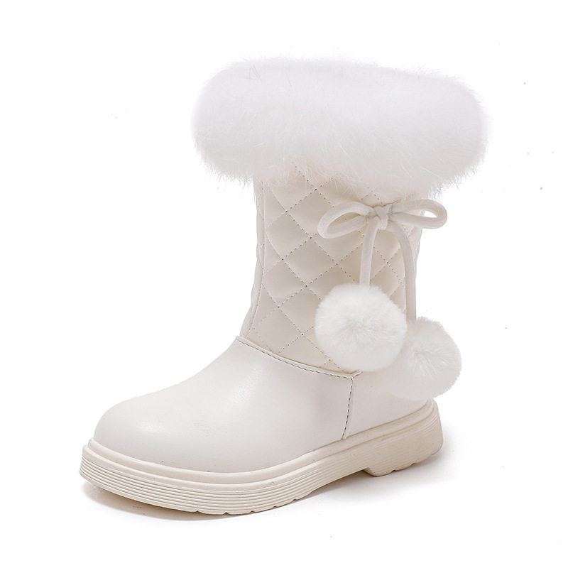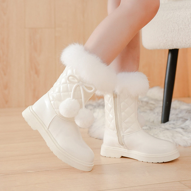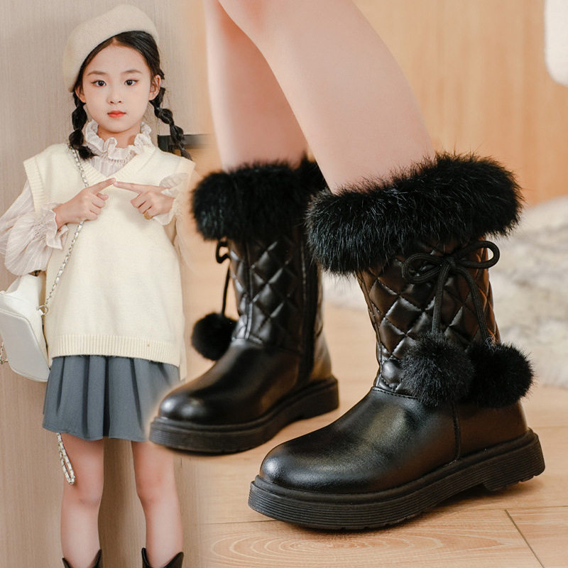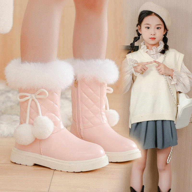 女童靴子秋冬新款韩版雪地靴中大童公主皮靴加绒加厚儿童大棉靴潮