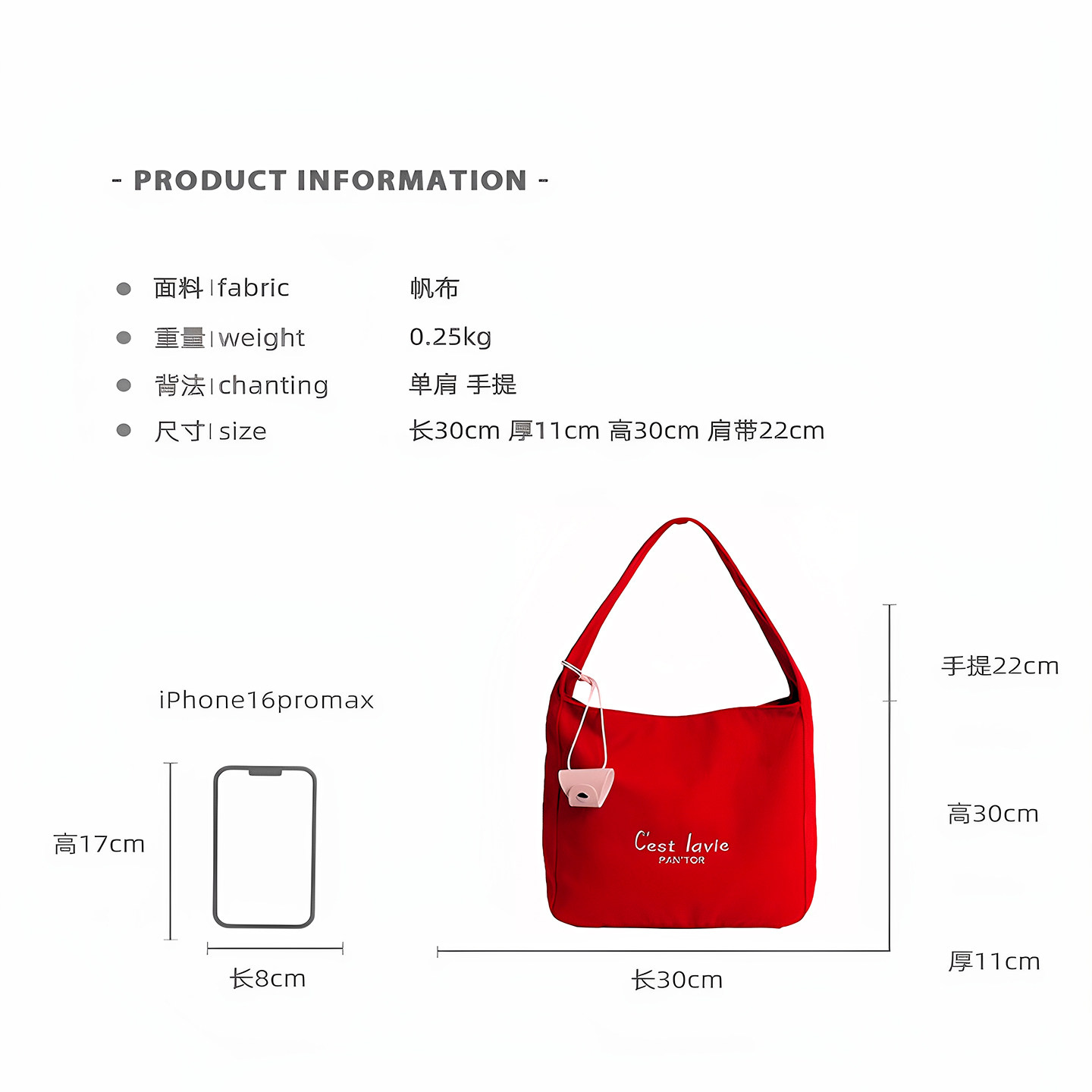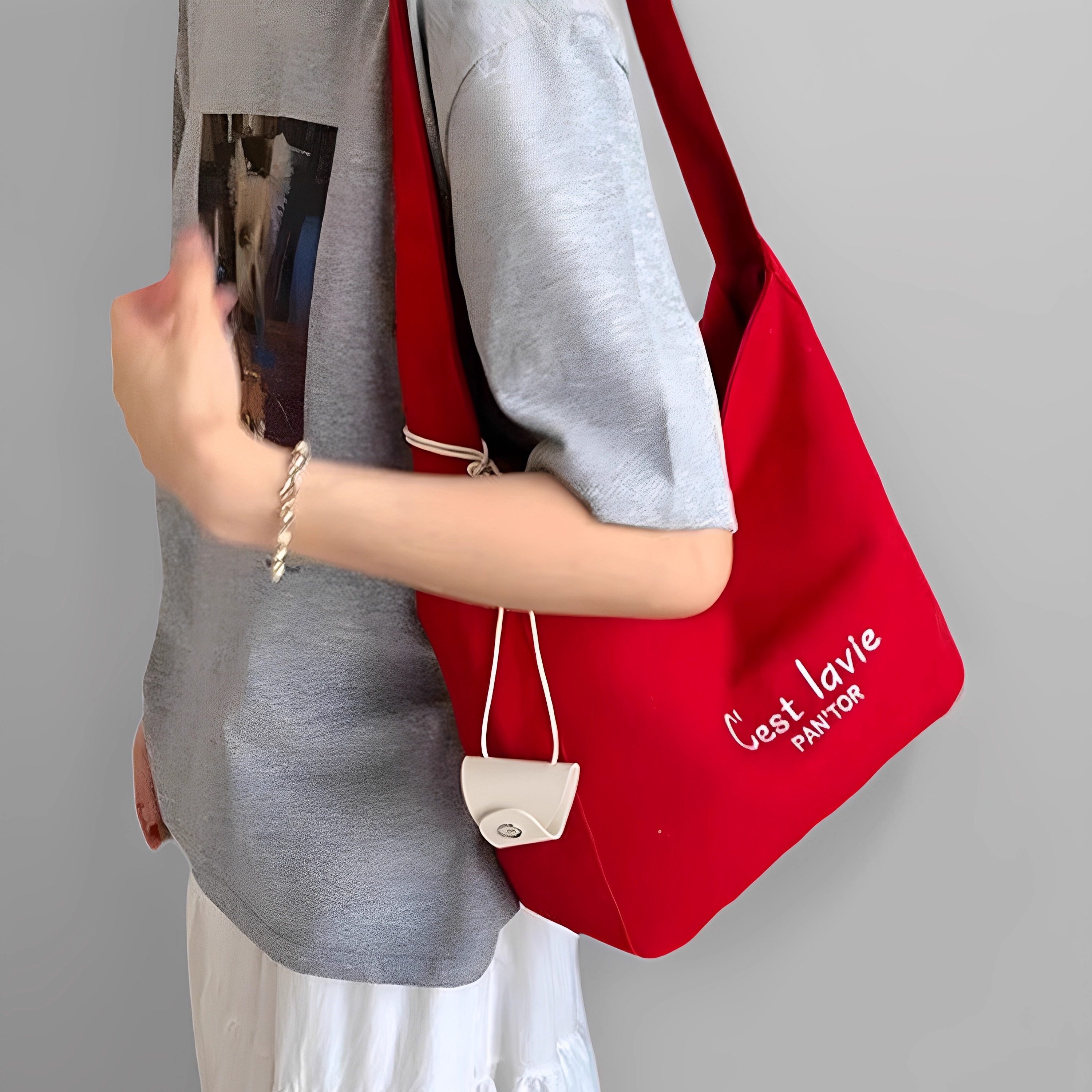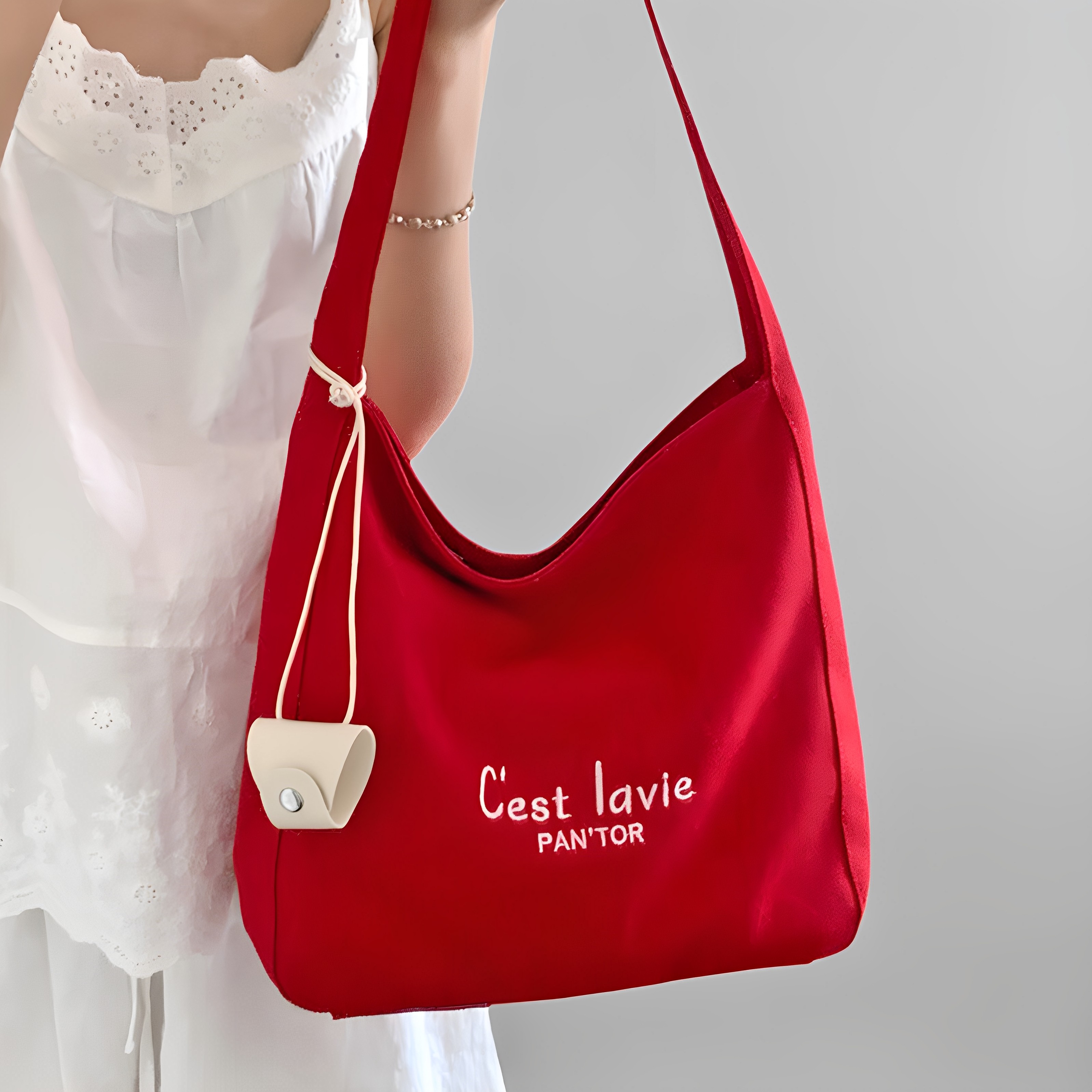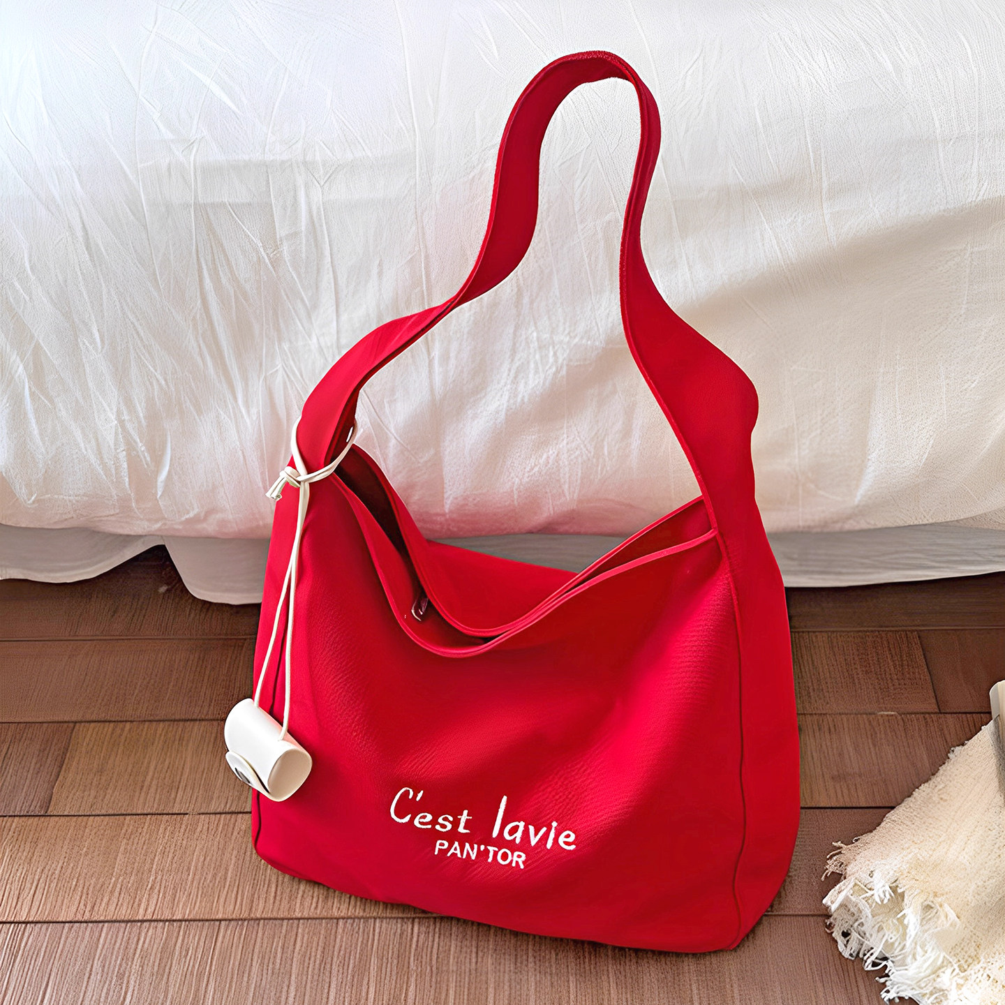 红色帆布包袋女夏2025新款大容量托特包轻便通勤单肩斜挎包带拉链