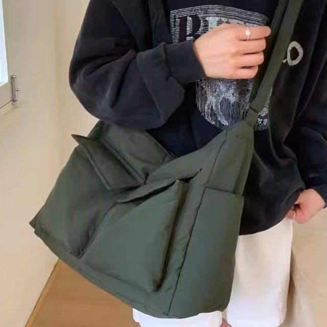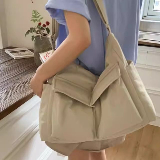 带拉链的托特包2025爆款超火帆布包大容量卡其色女上班通勤斜挎包
