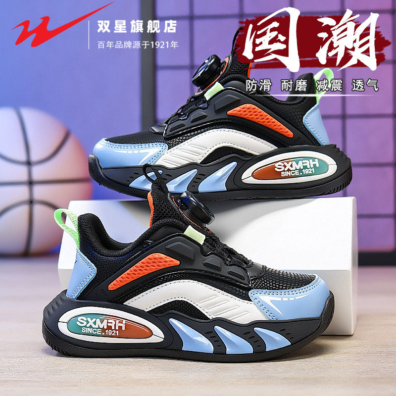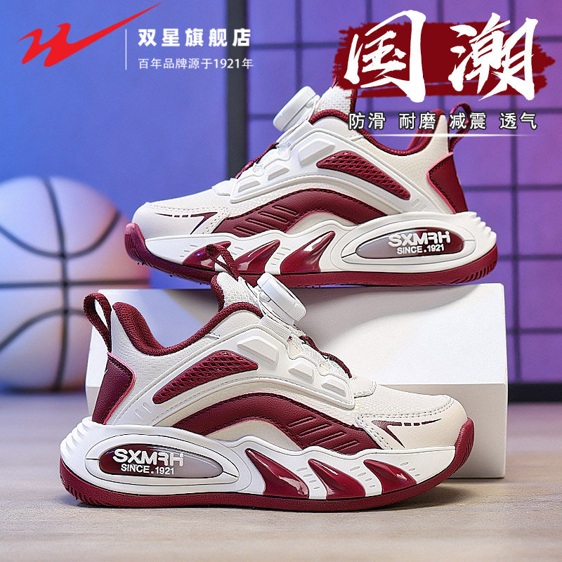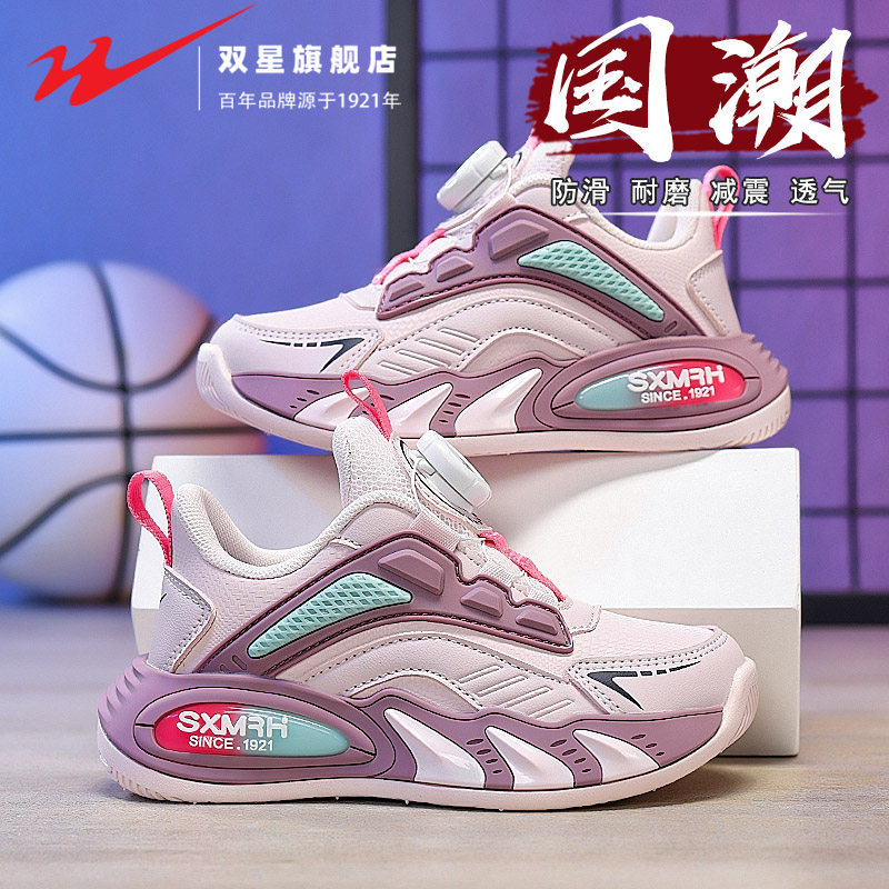 双星女童鞋春秋款2026新款女孩运动篮球鞋防滑减震旋转纽扣跑步鞋