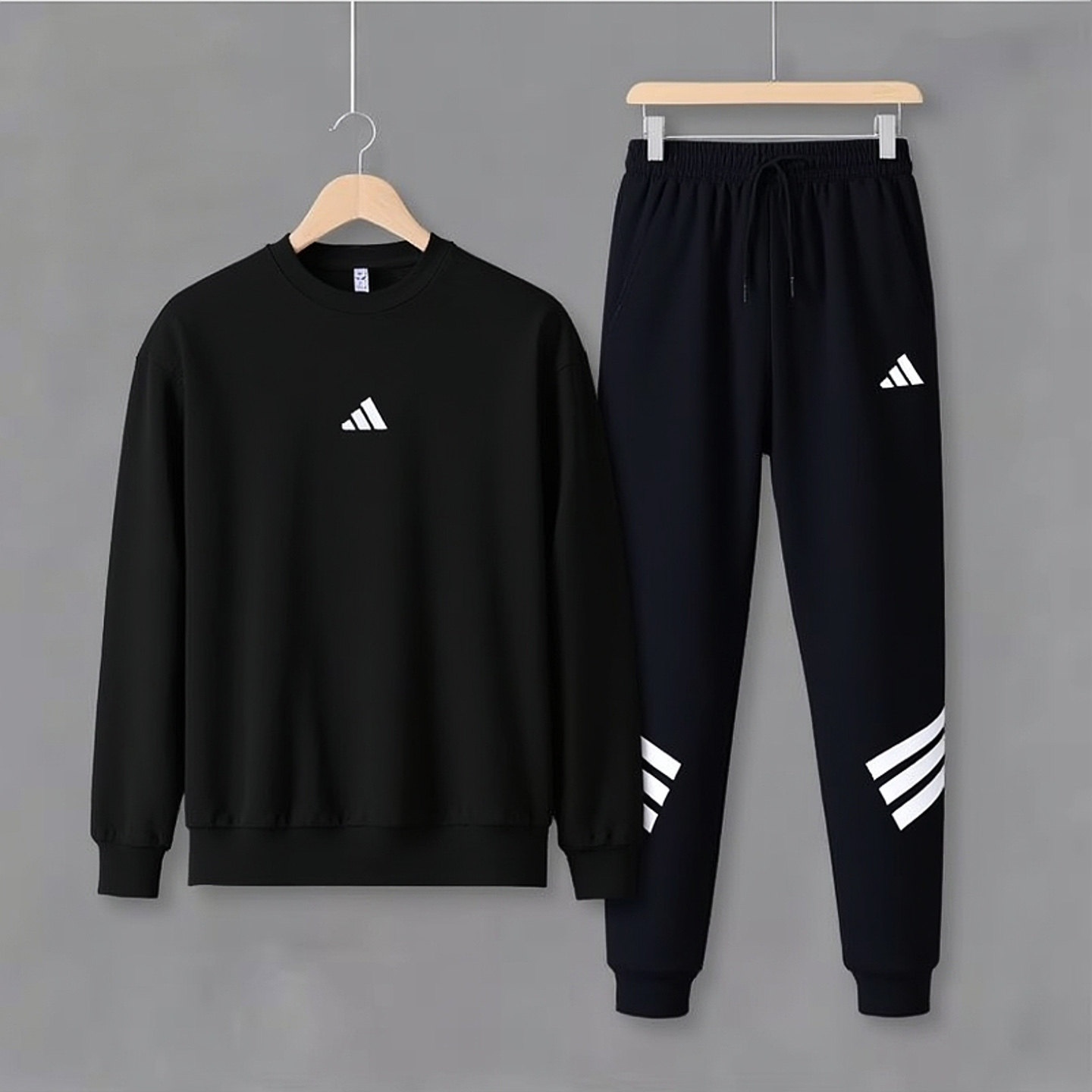 Adidas男款运动休闲卫衣长裤两件套2026春季新款黑色套装
