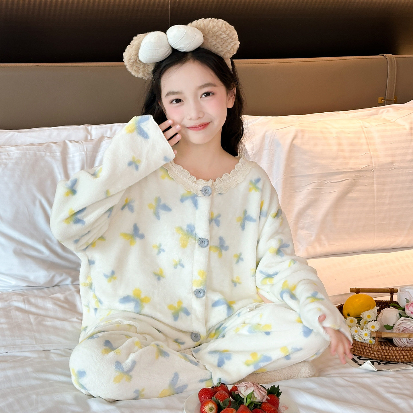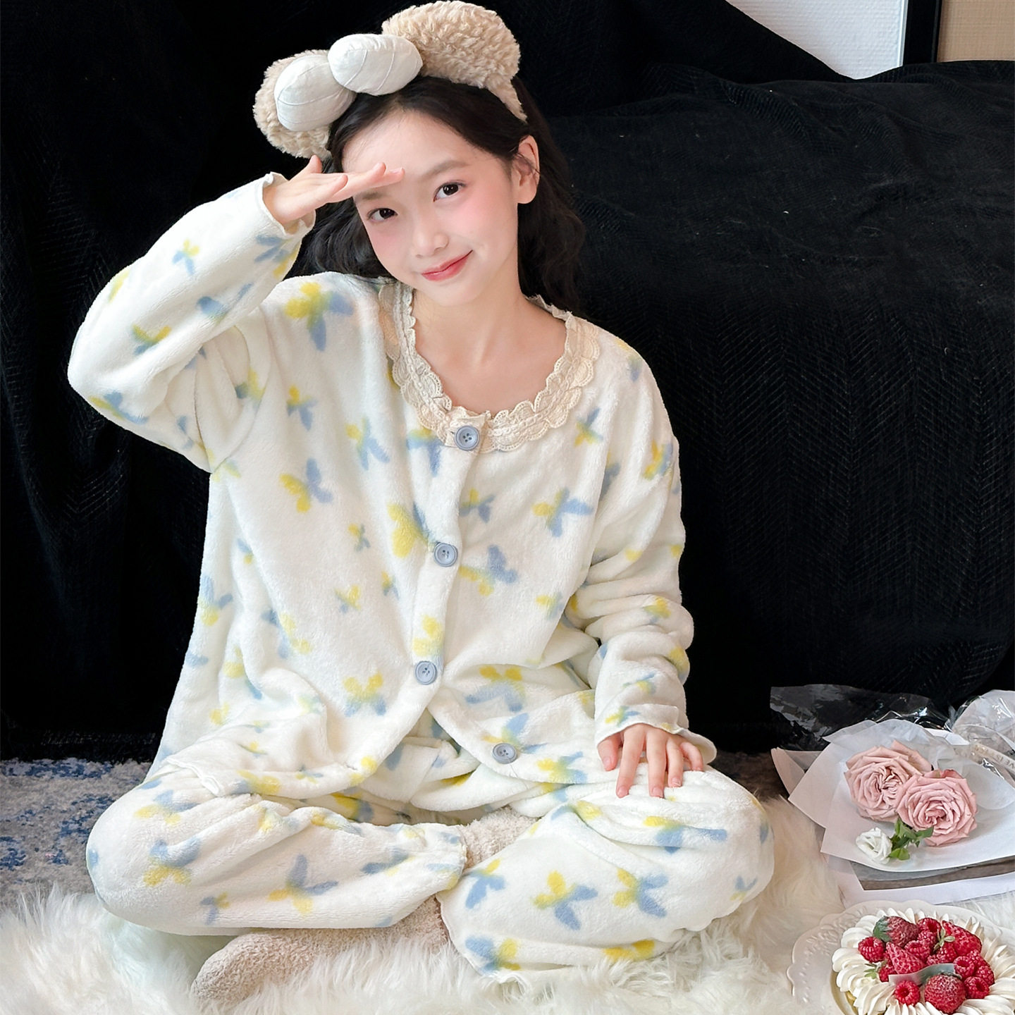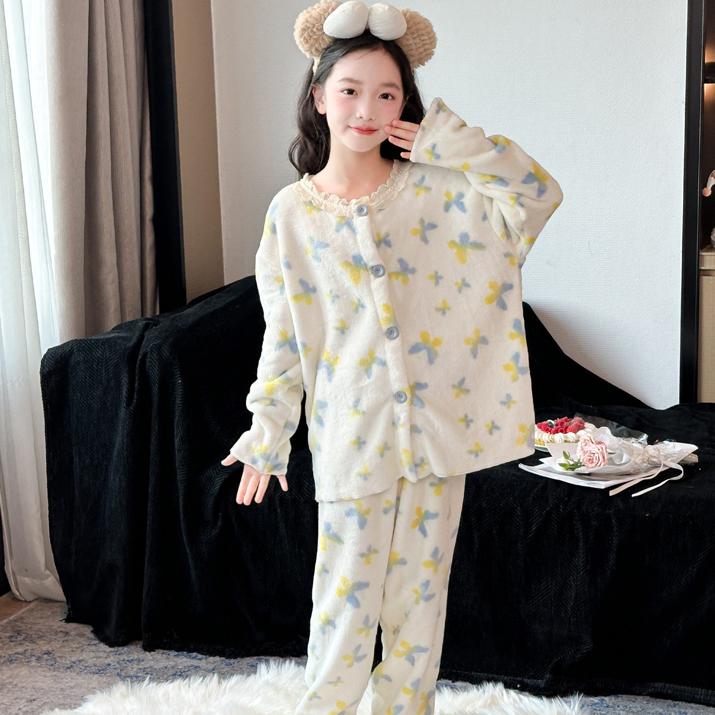 新款女童冬装珊瑚绒睡衣2025儿童冬季法兰绒套装初中生女孩家居服