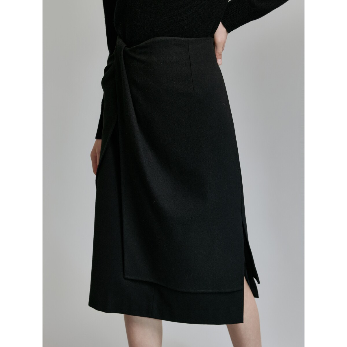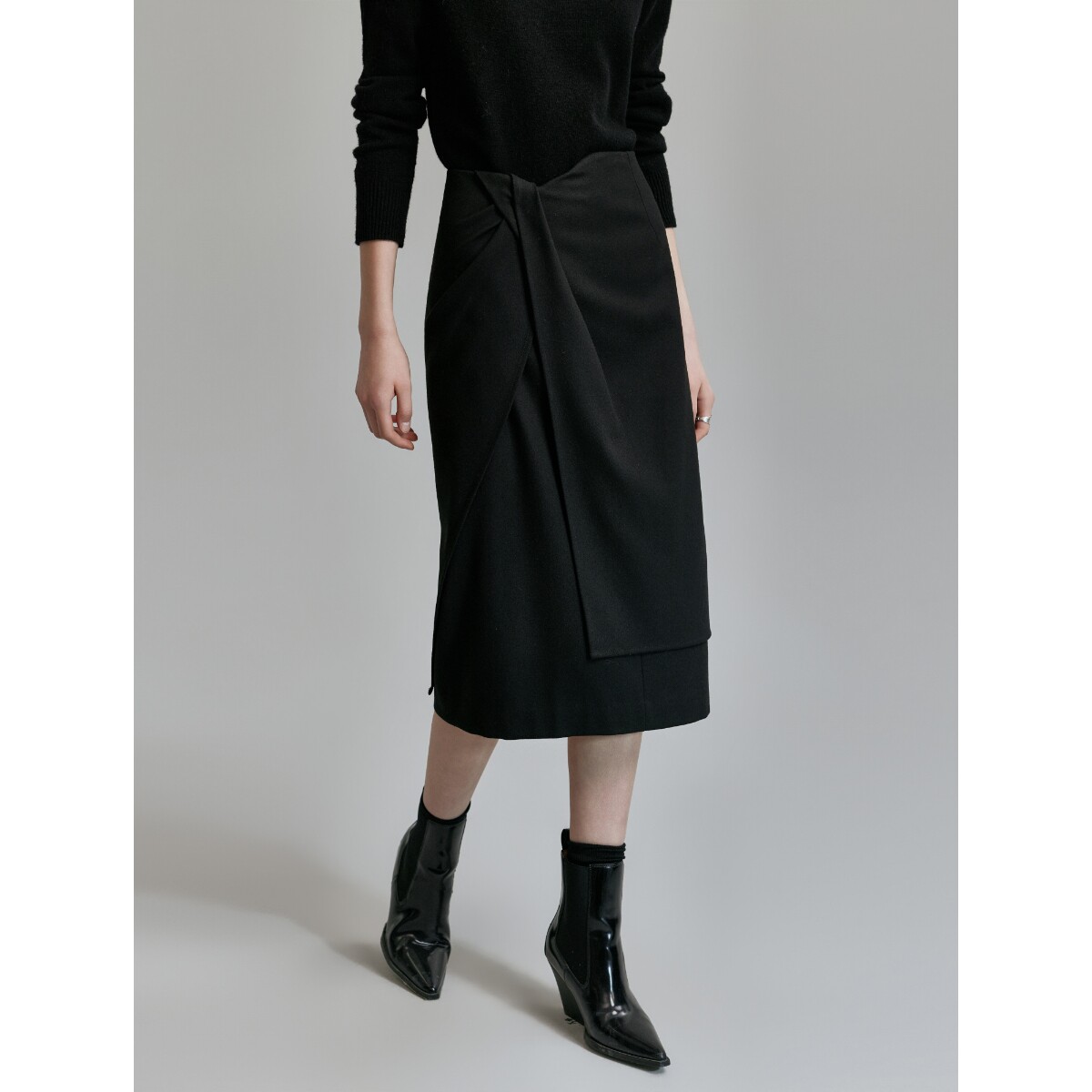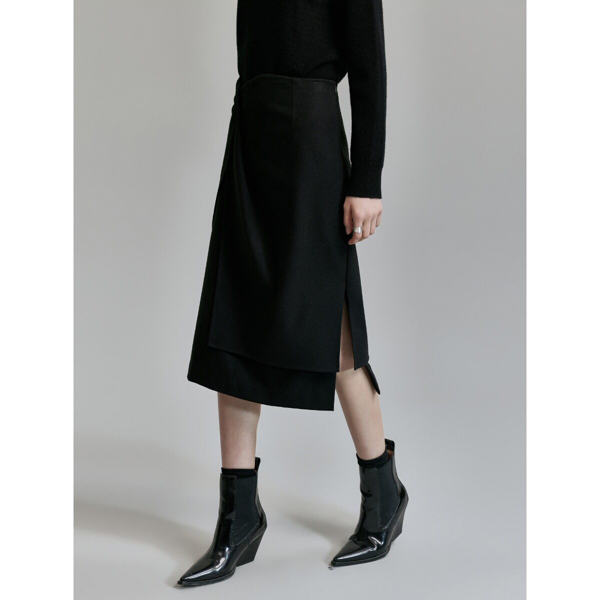 ELLE黑色设计感高腰显瘦半身裙女2025冬装新款高级感开叉气质裙子
