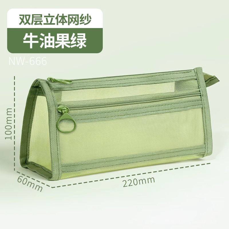 双层立体透明网纱笔袋考试专用新款大容量文具袋初中女生简约文具