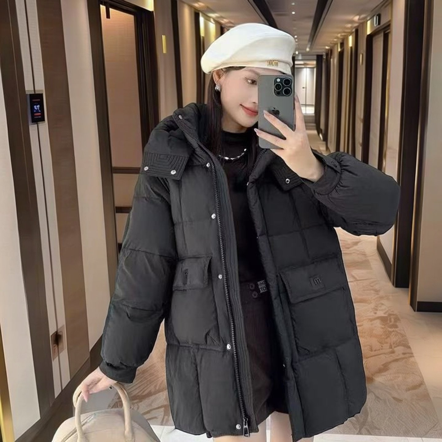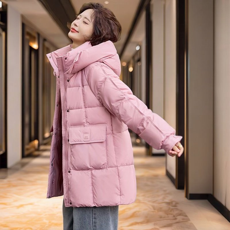 粉色鹅绒服女羽绒服2026新款巨好看的爆款中长款高充绒量时尚洋气