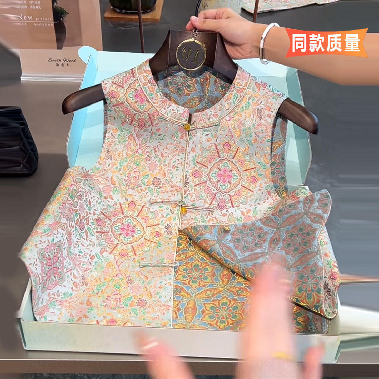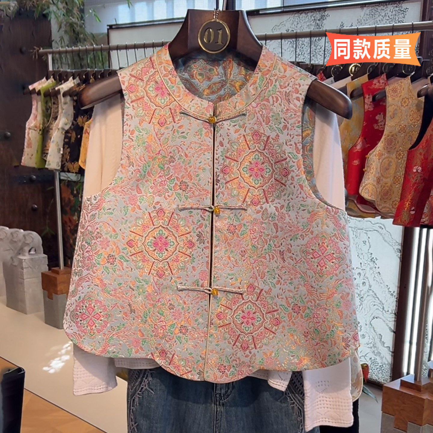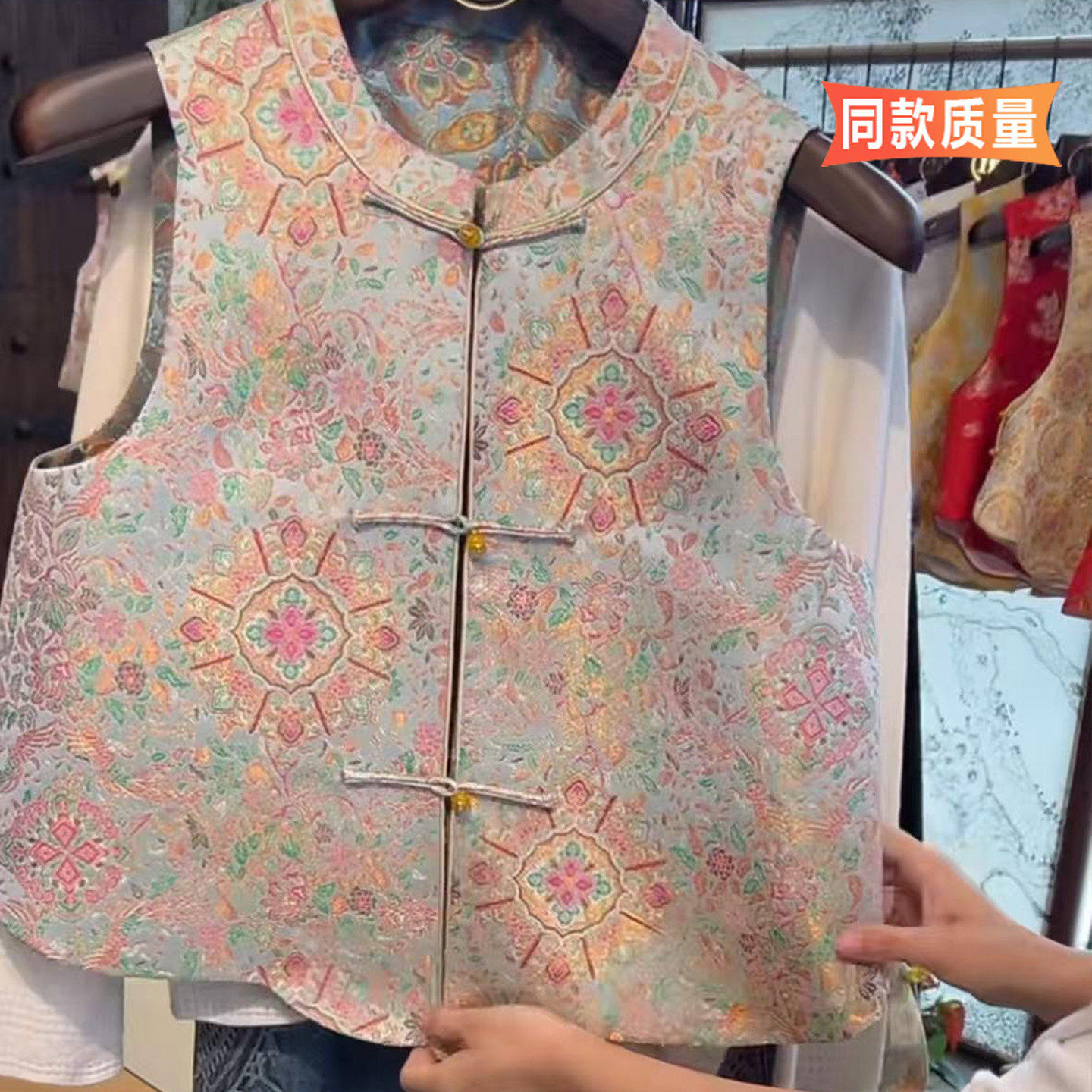 新中式宋锦马夹背心女外穿坎肩上衣2026春秋新款国风盘扣马甲外套