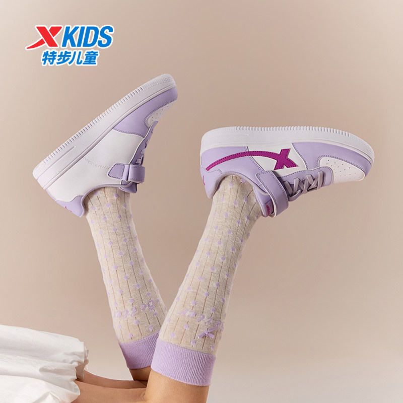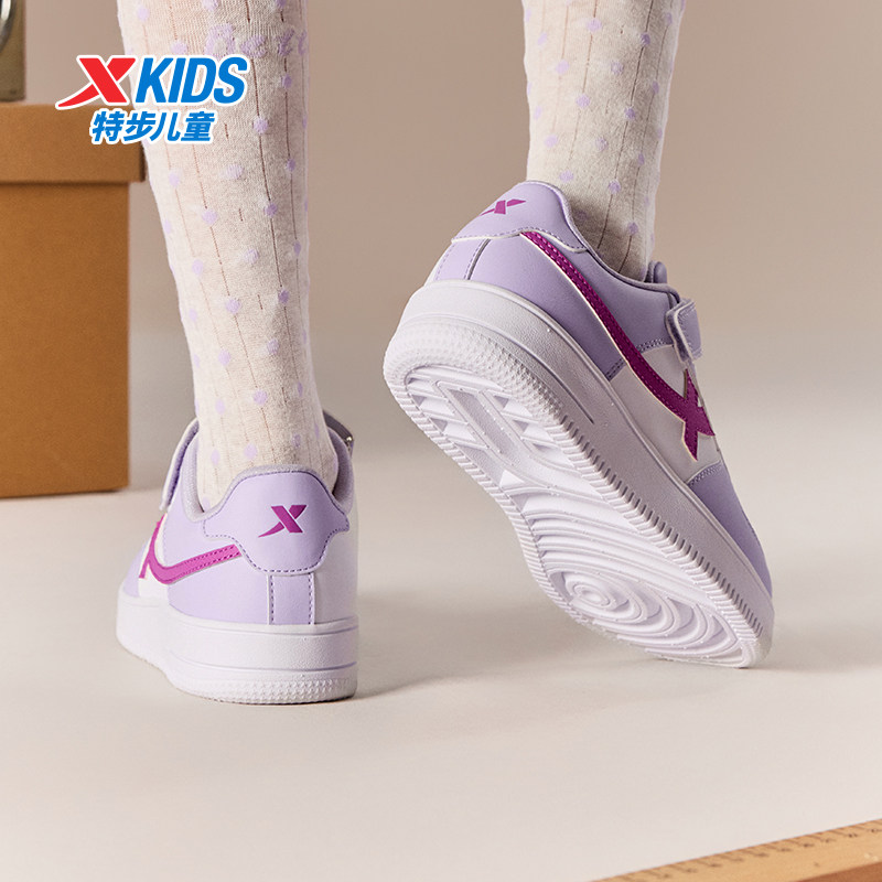 特步童鞋儿童板鞋女童魔术贴运动鞋中大童轻便耐磨鞋子女孩休闲鞋