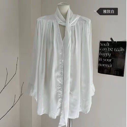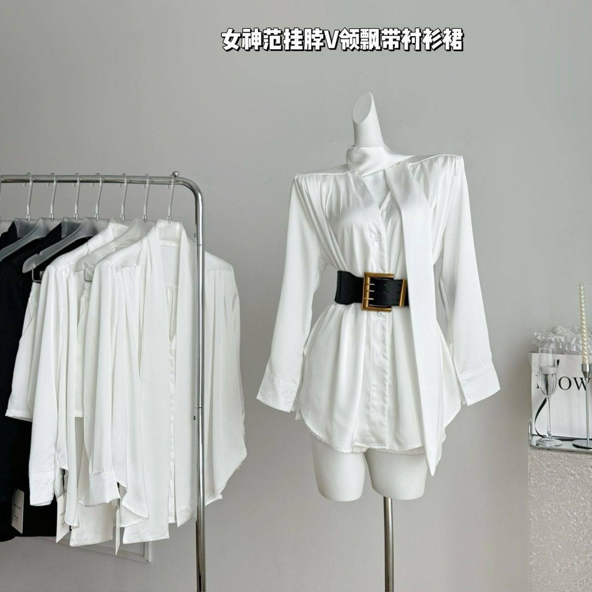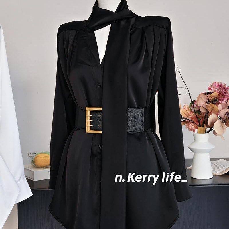 白色缎面衬衫连衣裙女秋季高级感长袖裙子御姐风气质收腰a字短裙