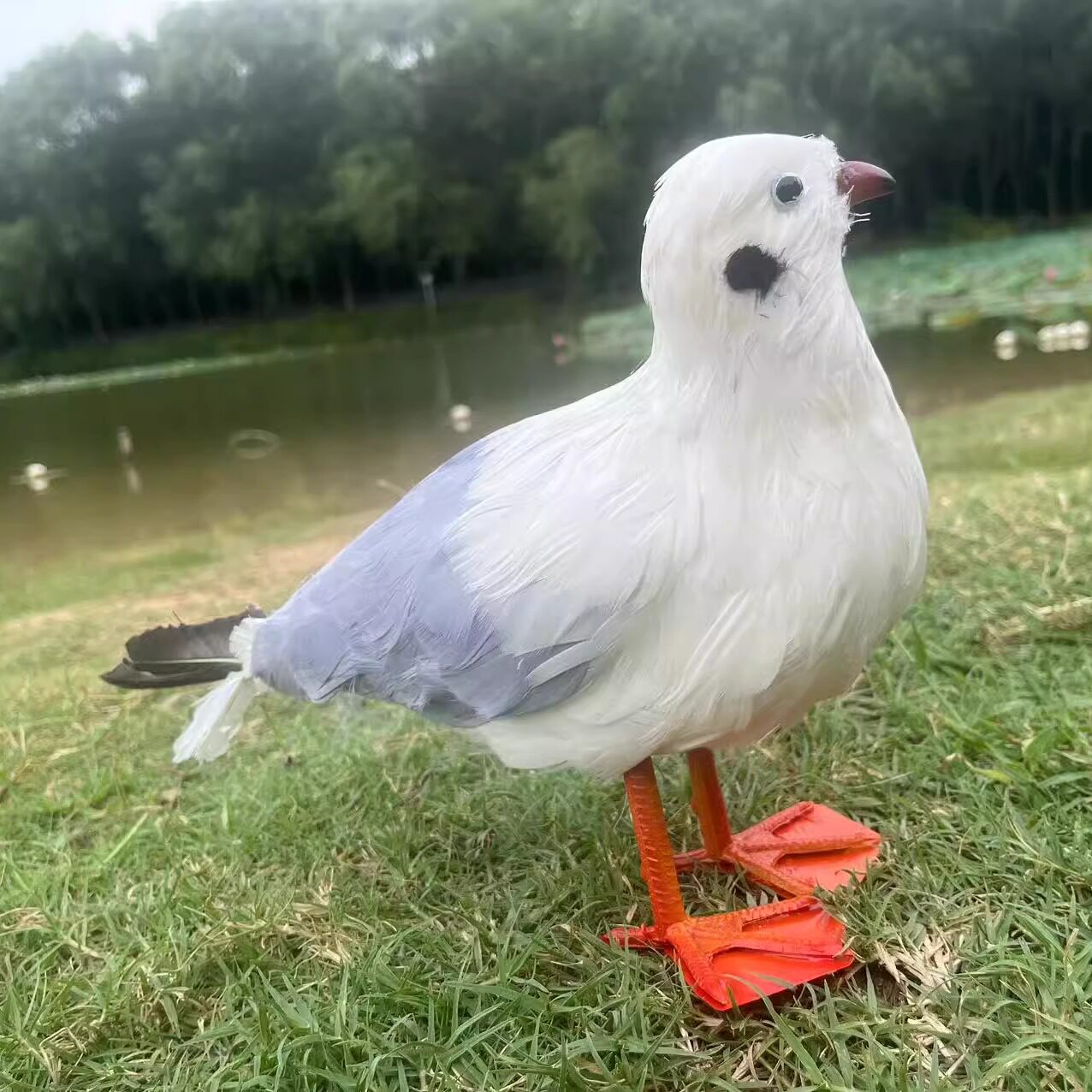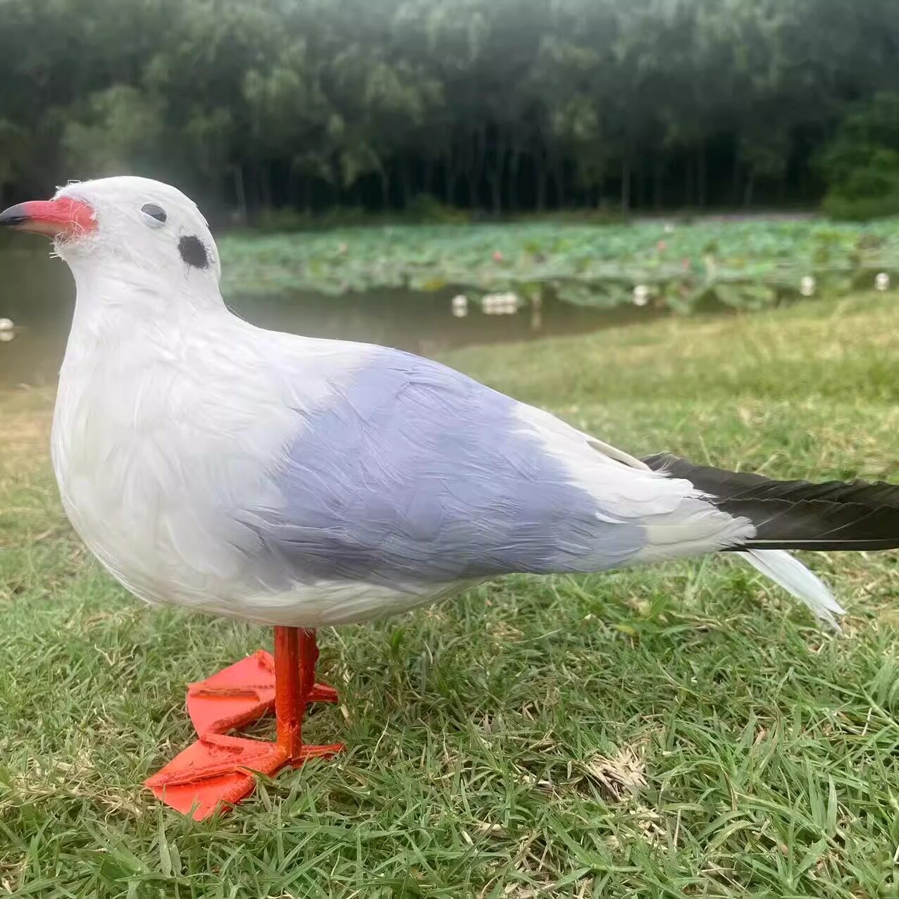 仿真手工羽毛红嘴鸥黑冠婚纱摄影婚庆创意落地摆件庭院装饰展厅场