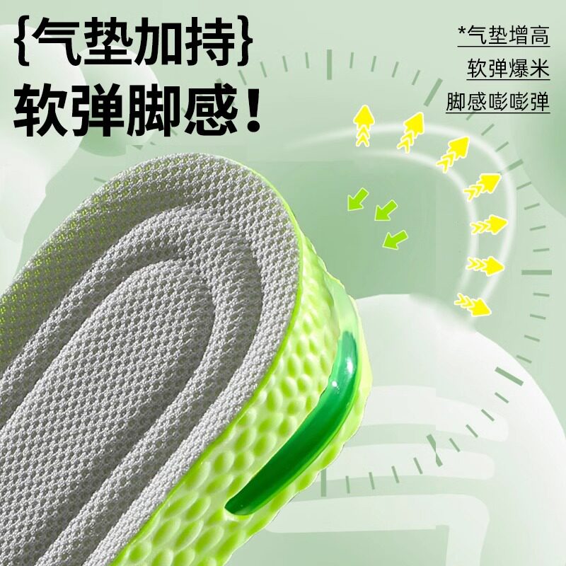 气垫内增高鞋垫男女不累脚隐形踩屎感吸汗防臭运动减震鞋垫加厚